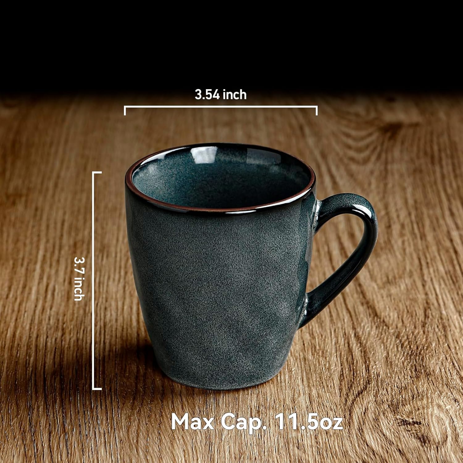 famiware Coffee Mugs Set of 4, Ocean Round 11.5oz Coffee Cup Set with Handle for Cocoa, Milk, Hot Chocolate, Stoneware Cups for Kitchen, Reactive Glaze, Microwave Dishwasher Safe, Deep Forest