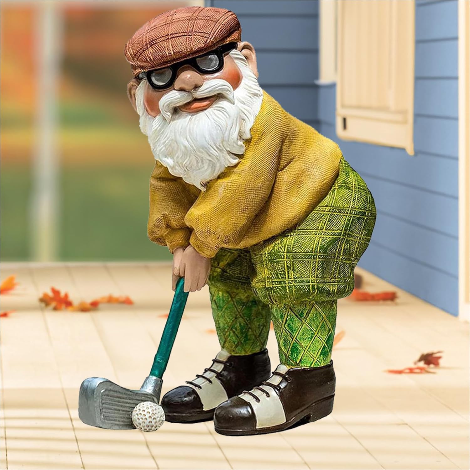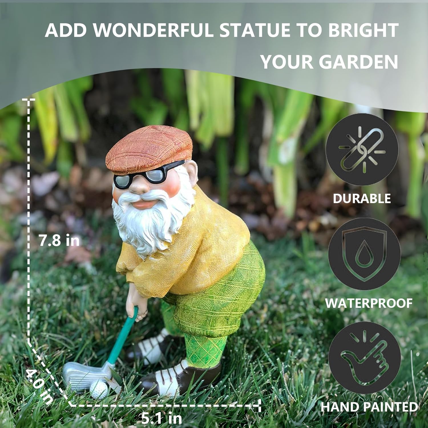 - YARD GOLFING GNOME DECORATION: This golfing gnome statue can make your friends and family laugh when your guests visit your garden, lawn, entrance or indoor room and will make a charming addition to your garden, patio or anywhere inside your home.
