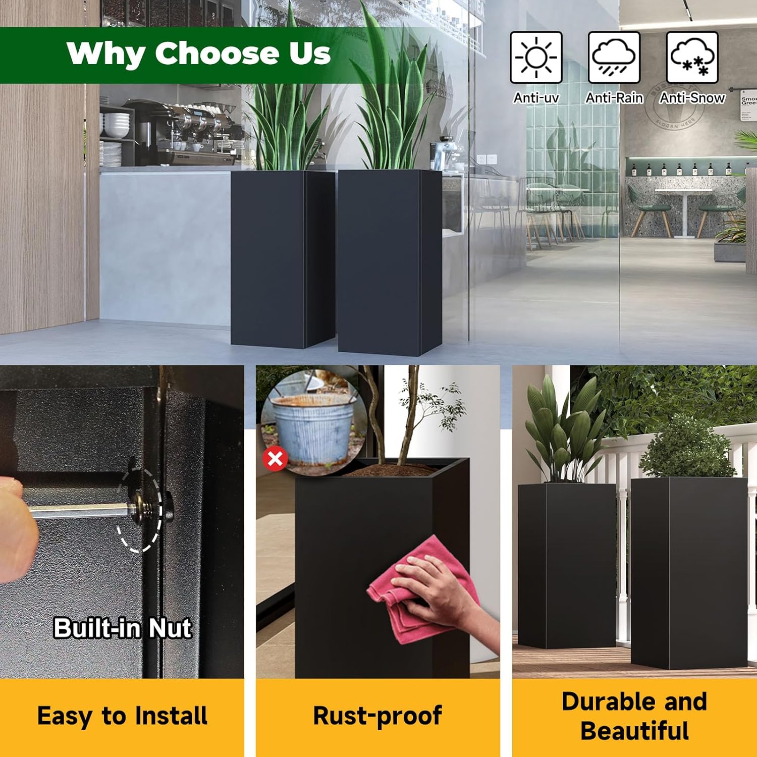 - GALVANIZED STEEL PLANTER - This Metal Planter is built to galvanized steel. With black powder coating,effectively prevent rust and corrosion