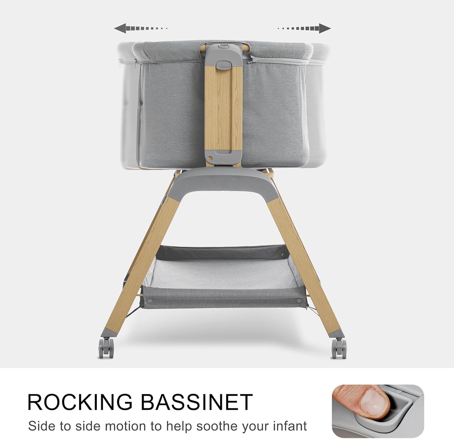 - Versatile: Jimglo 3 in 1 baby bassinet can be used as a standalone bassinet, bedside sleeper keep baby within armβs reach, or rocking bassinet that provide side to side motion to help soothe your infant.