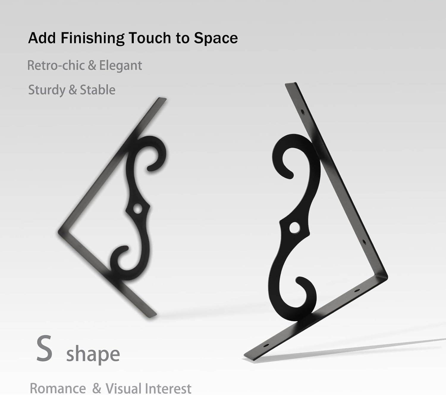 - 【Add Finishing Touch to Space】Mid-century design adds a retro-chic vibe to your home. Rusticity wood grain and exquisite S-shaped iron brackets flaunt visual interest and romance. They are full of character and enhance the texture of the space. A classy way to display your beloved decorations