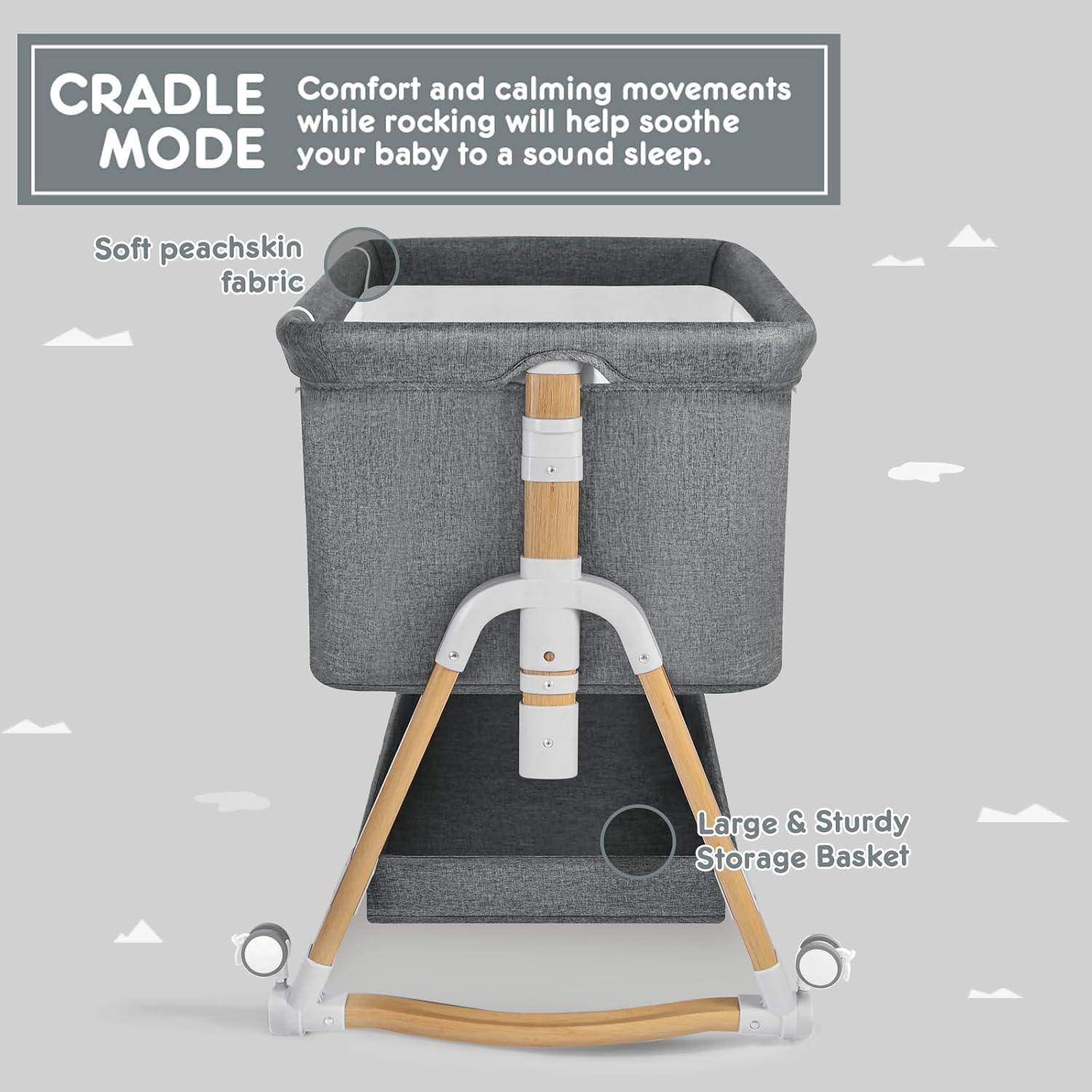 - 3 in 1 Convertible Bassinet: HARPPA bassinet can be used as a bedside bassinet、rocking bassinet or standalone baby bassinet. Mimicking gentle parental rocking to create a tranquil sleeping environment for the baby