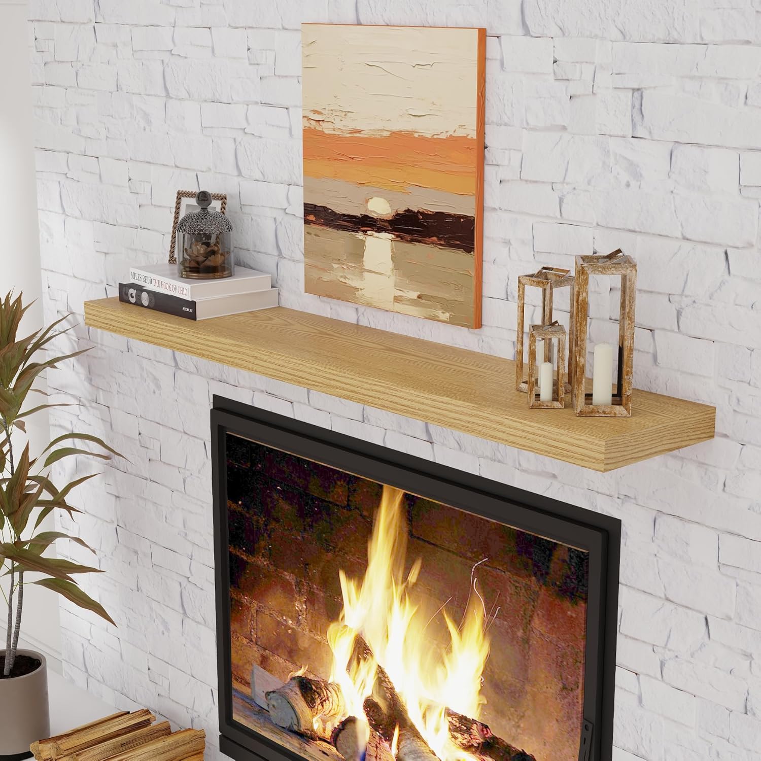 Floating Shelves 55 Inch Long, 55"W x 9"D Wall Shelf Invisible Bracket, 9 Inch Deep Floating Shelf for Wall, Rustic Wooden Shelves for Living Room, Kitchem, Bedroom, Oak Color, Set of 1