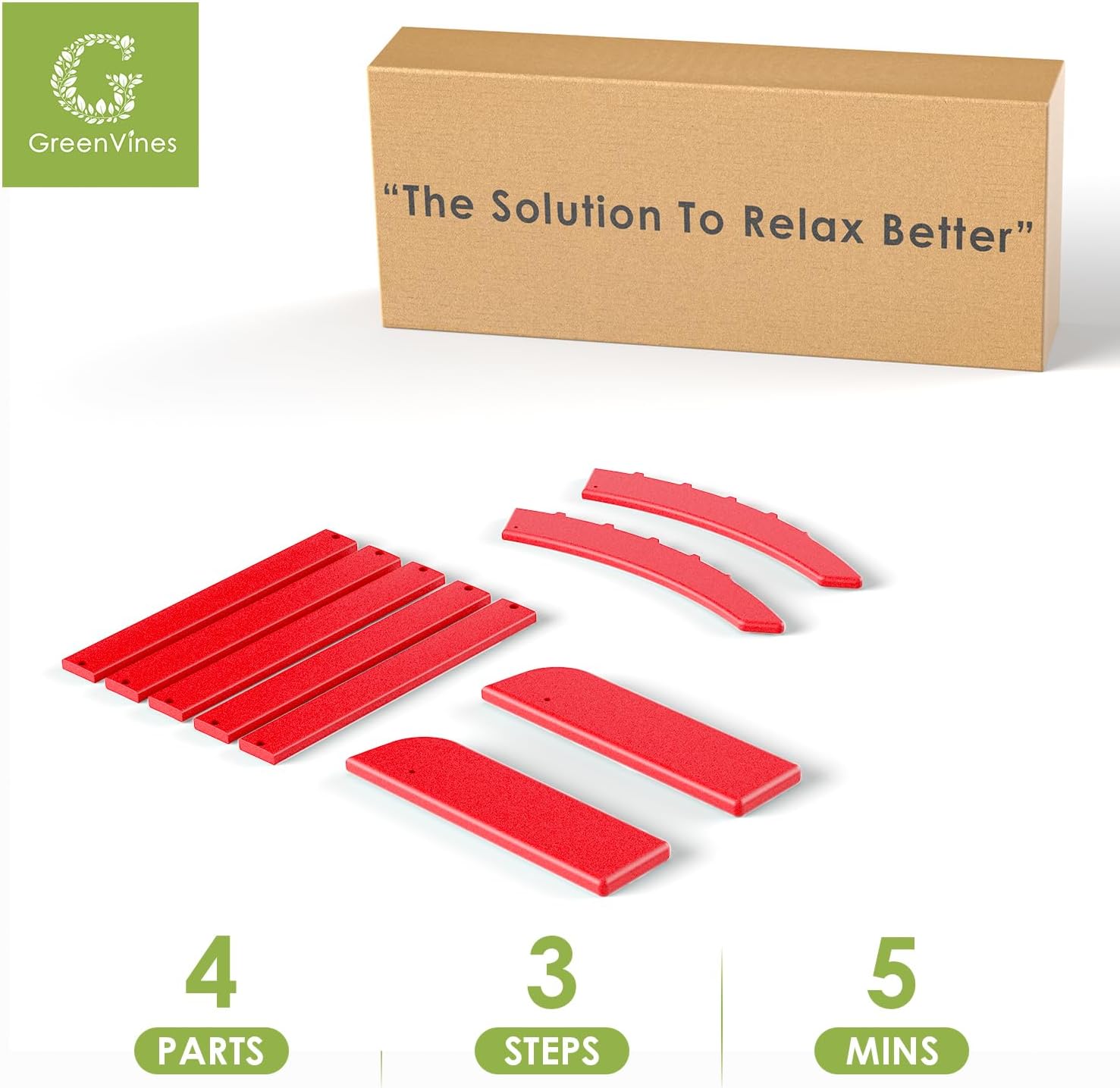 GREENVINES Adirondack-Ottoman | Set of 4 | HDPE Plastic | Outdoor Footrest | All Weather | Foot Rest | Foot Stool | Red | for Adirondack Chair | for Patio Backyard Pool