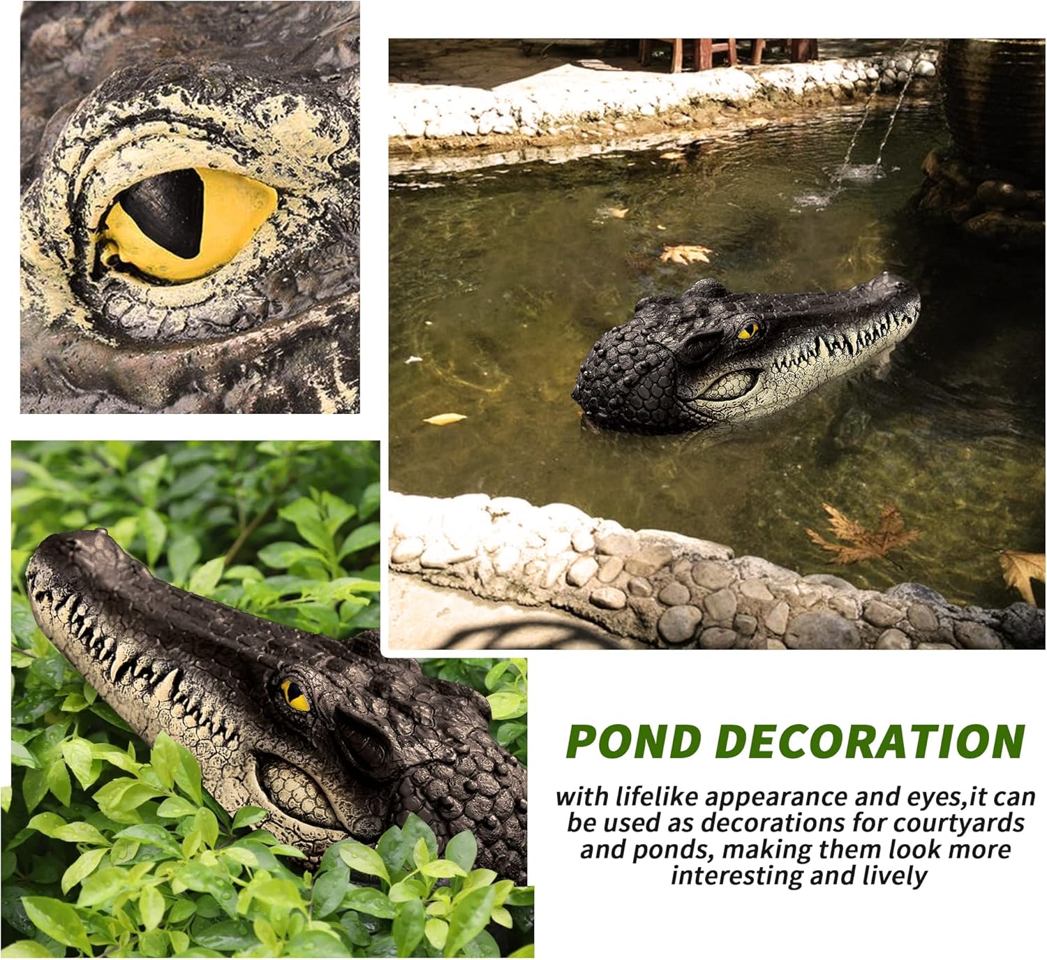 - Versatile Use:Our alligator float for pool is not just a functional decoy but also a versatile decoration,suitable for garden and pond,you can put it anywhere, the realistic crocodile head will be a cool home decorating crocodile head into your pool or pond to create a noticeable addition to your yard.