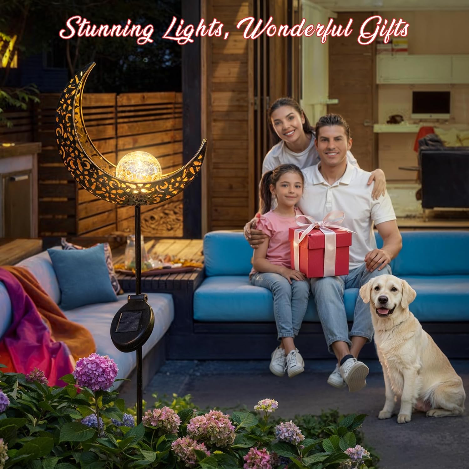 2Pack Moon Garden Solar Lights Outdoor Stakes Waterproof, Gifts for Mom, Crackle Glass Patio, Backyard Decorations, Balcony Lawn Ornaments, for Women Men Grandma (Bronze)