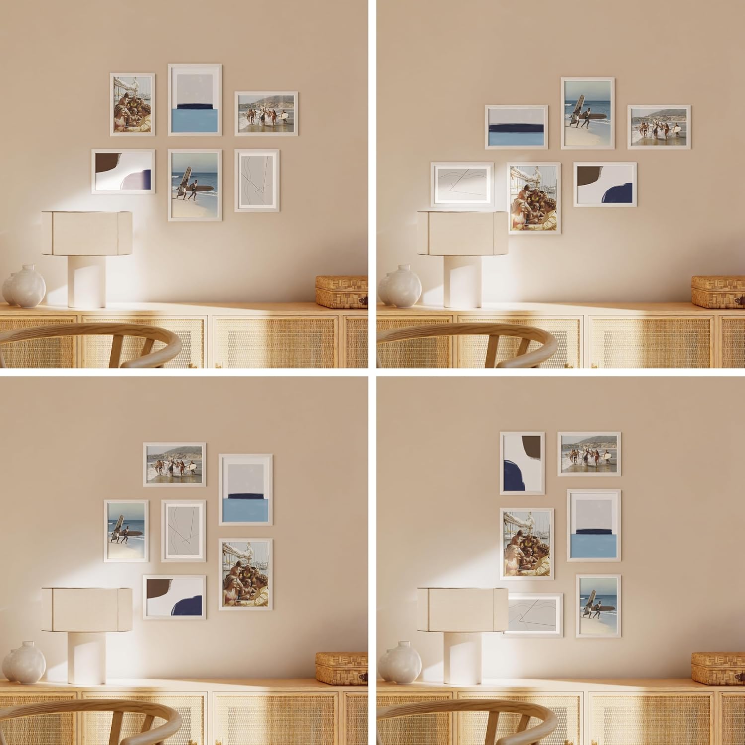 - OUR COMMITMENT: Our team ensures every white picture frame set order passes our standard inspection to minimize misprints and order defects. We want you to shop our white gallery wall frame set confidently and experience the beauty of these white wood picture frames for yourself