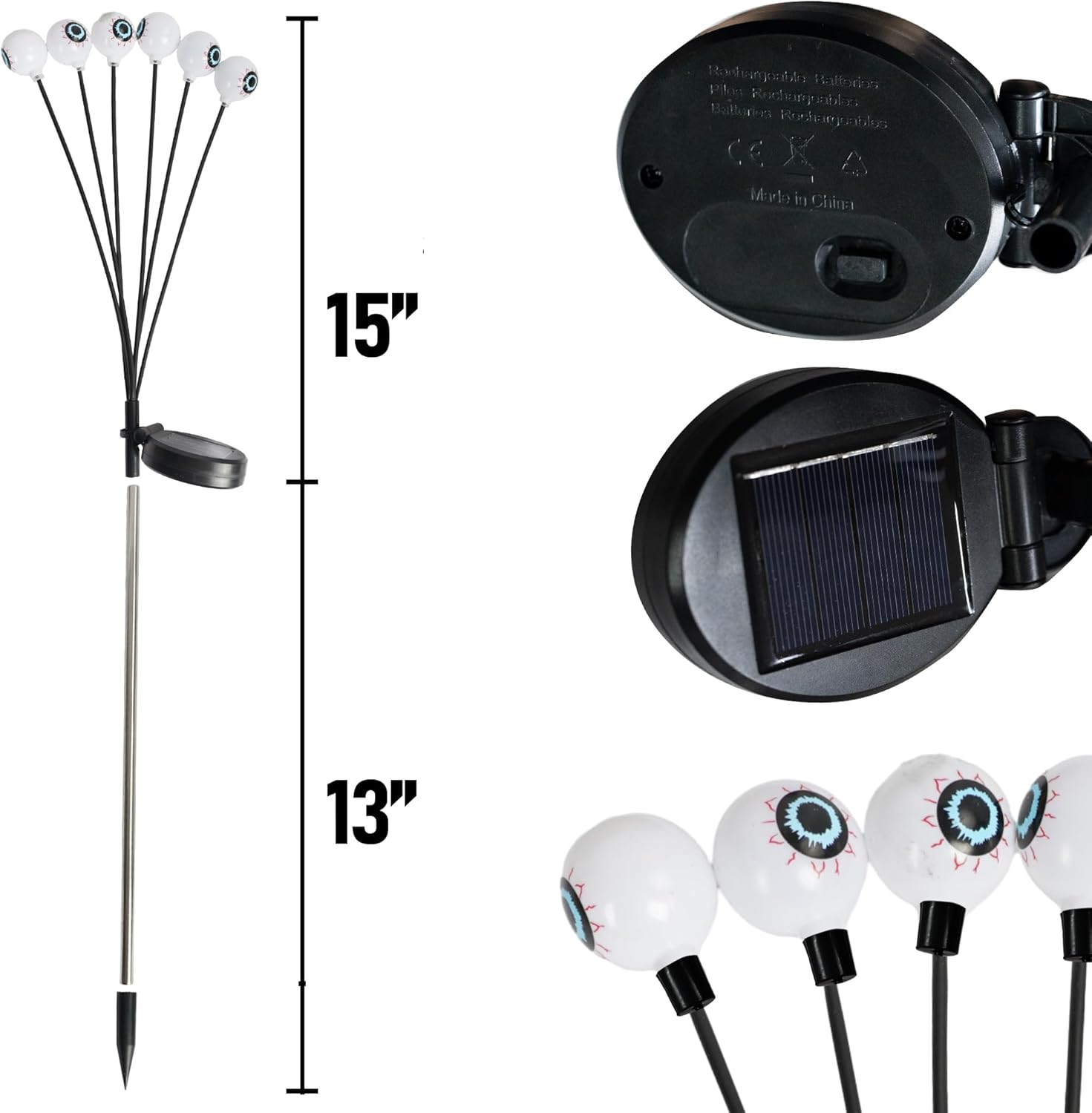 - Package Include: 2 pack 12 LED halloween eyeball lights,The upper section is 15 inches long and the lower section is 13 inches long, exquisite Halloween decorations, to create a scary atmosphere for your Halloween party.