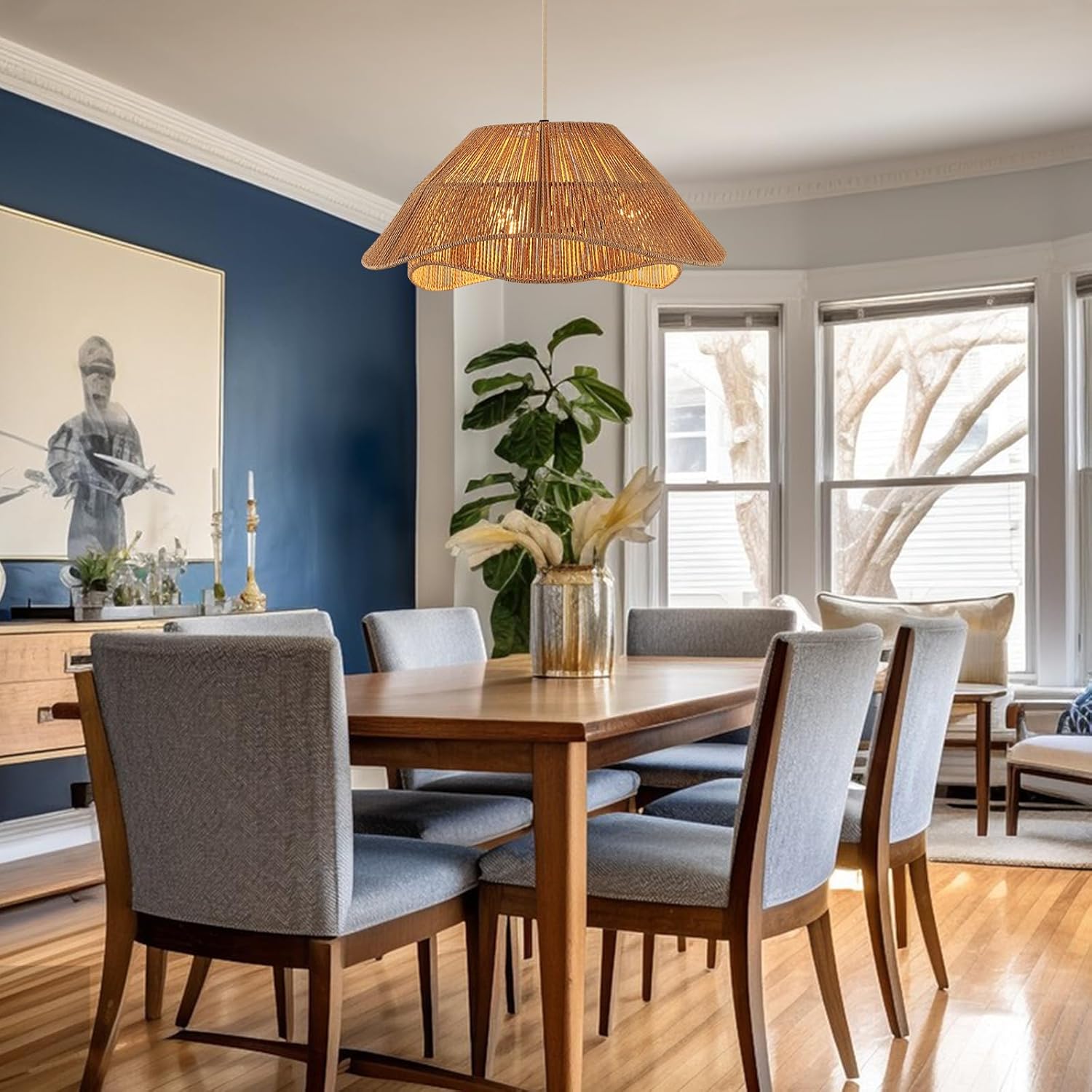 - 【Wide Applications】The 19.68 inch diameter wicker chandelier adds a natural touch to any space and is perfect for hanging in dining rooms, living rooms, bedrooms, kitchen islands, bathrooms, stairway, hallway, foyers, laundry rooms, offices, and other areas, being the highlight of the house.