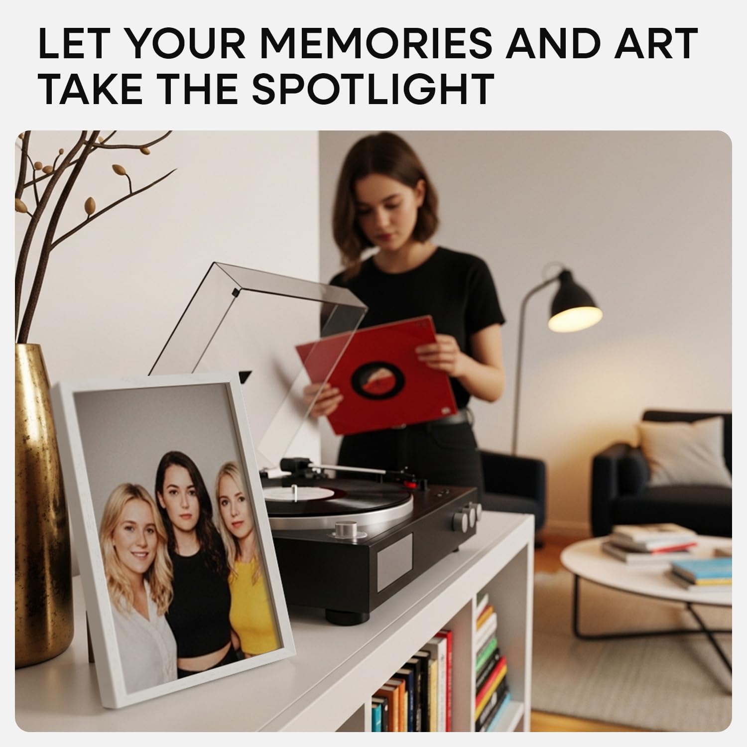 - GALLERY GRADE GLASS, TRUE CLARITY. Why settle for cloudy plexi? Our ultra-clear tempered glass sharpens every detail and adds instant polish to your photo or print.