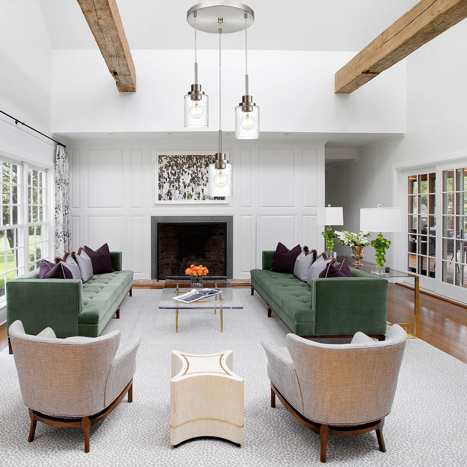 - Versatile Applications: The clean, classic design makes this 3-light cluster pendant light a versatile choice for various settings, including kitchens, dining rooms, hallways, living rooms, restaurants, hotels, and bedrooms.