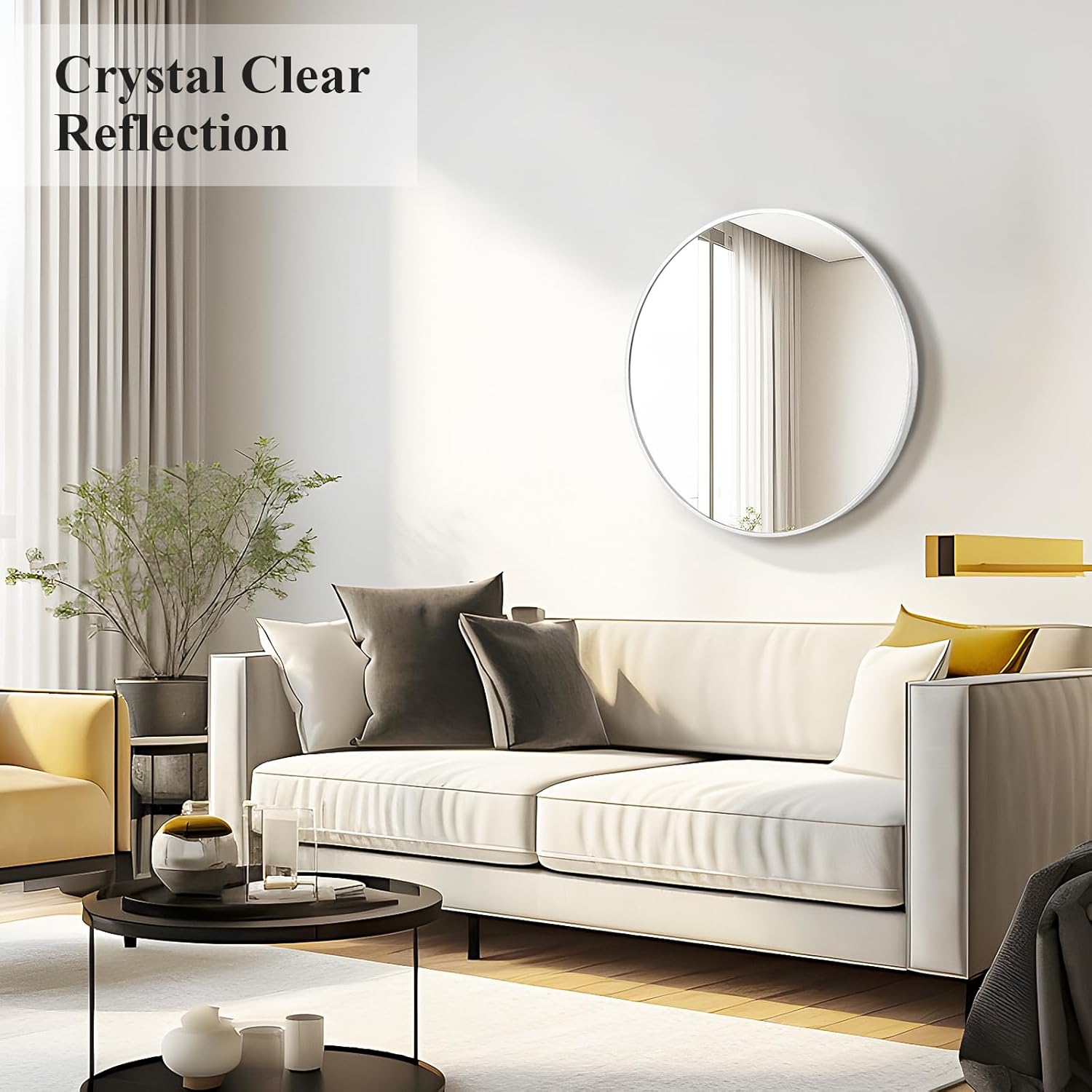 Fabuday Silver Circle Mirror for Wall 20 inch - Round Mirror for Bathroom, Entryway, Living Room, Hallway, Bedroom Decor, Small Matte Frame Mirrors
