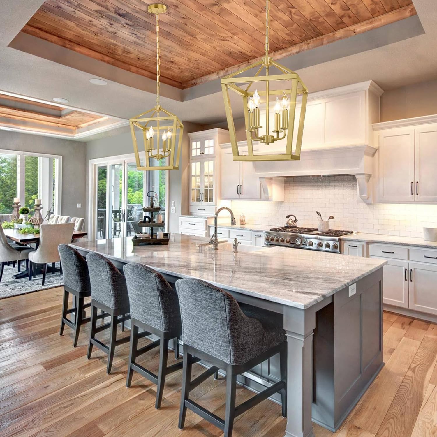 - 【Statement-making Light】The gold chandelier with 4-light interior candelabra provides abundant light to your home while lending a rustic flair in an iconic lantern silhouette. With its dense modern farmhouse style, it is both a lighting fixture and a great decoration in any space like dining room, kitchen island, living room, bedroom, hallway and foyer. Great choice for your home decor