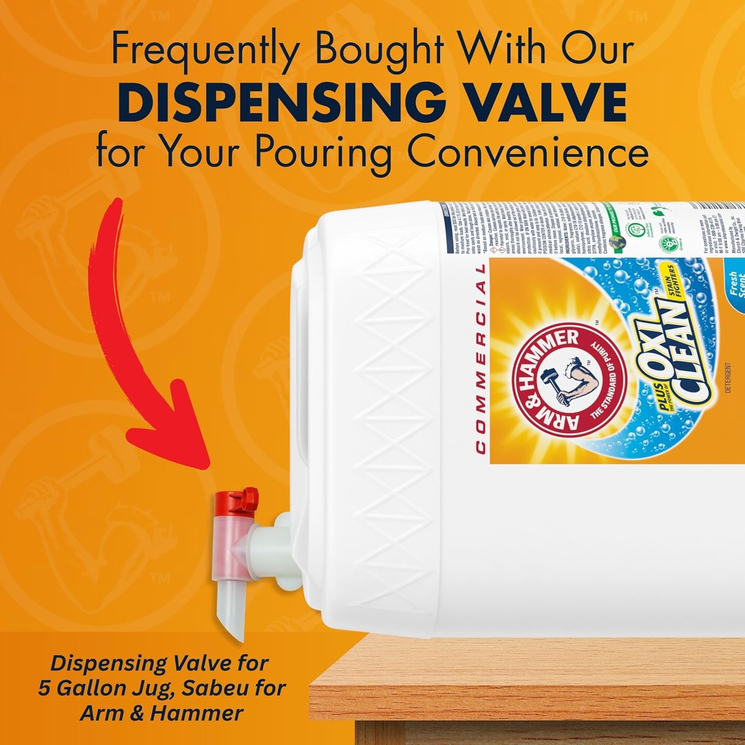 - FREQUENTLY BOUGHT TOGETHER: This product is frequently purchased with the Arm & Hammer 5 Gallon Dispensing Valve that easily attaches to the jug for your convenience.