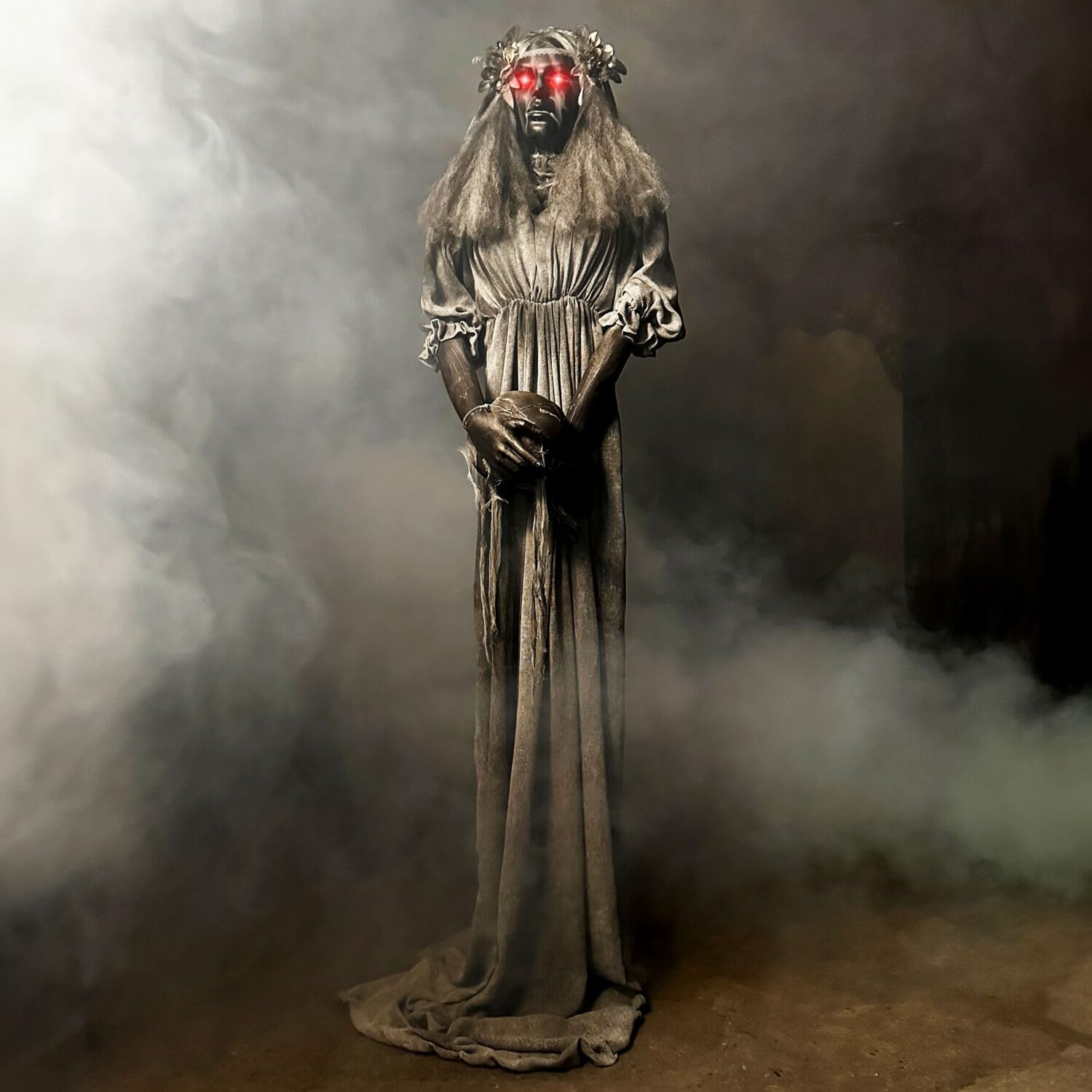 Haunted Hill Farm Lifesize Animatronic Scary Haunted Lady Statue with Touch Activated Lights and Sound, Battery-Operated Indoor or Covered Outdoor Halloween Decoration