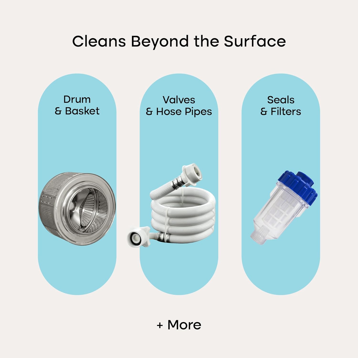 - Effortlessly Deep Clean Your Washing Machine: Completely refresh your drum, valves, hose pipes, seals, and filters with a single wash cycle using our advanced washer machine cleaner tablets.