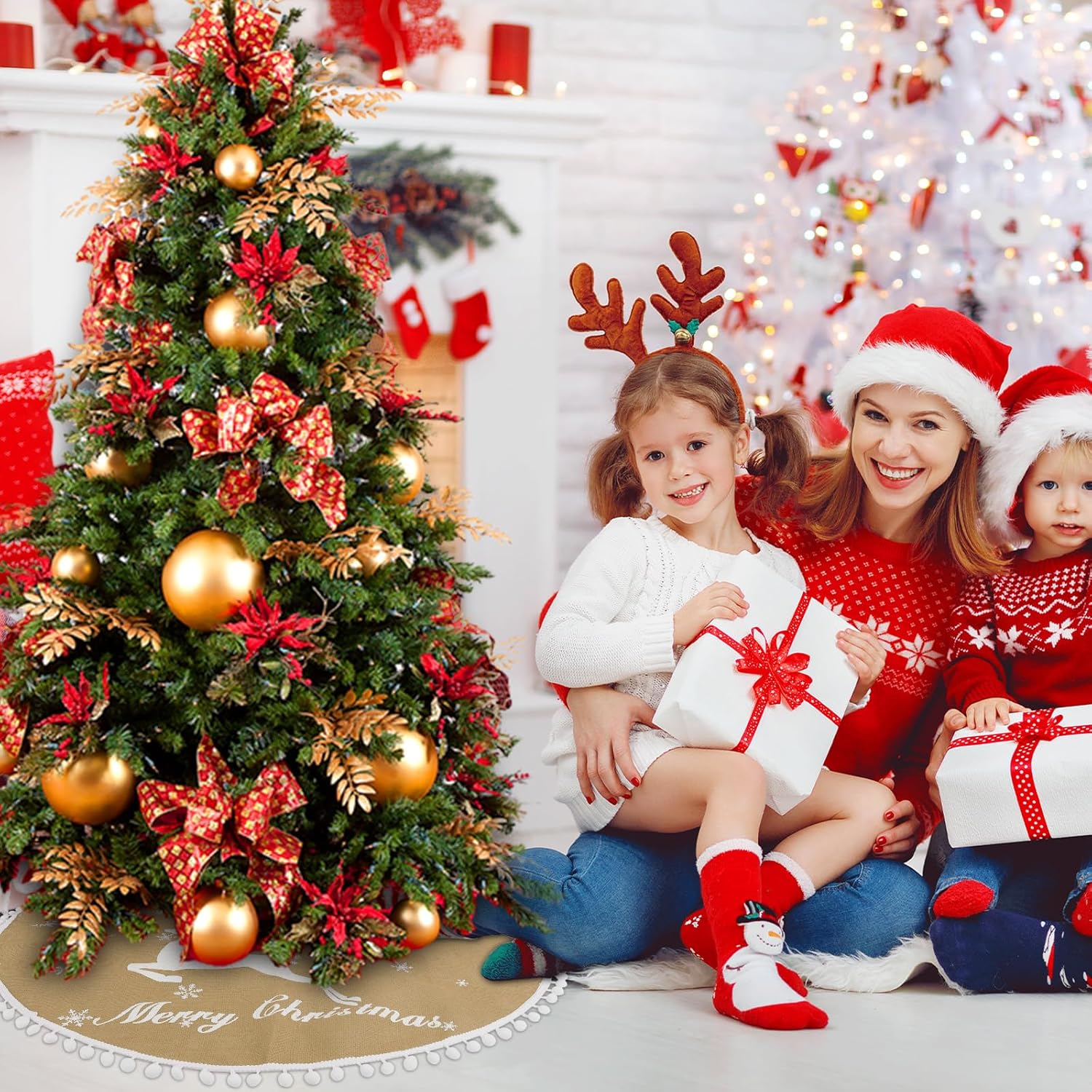 - Burlap Material Tree Skirt:This rustic tree skirt Christmas is made from natural burlap. The color has been safely treated to present a classic Christmas linen color. This fabric makes the Christmas tree skirt tough, durable, and environmentally friendly, and it will not pill. The tree skirt can be reused in subsequent years
