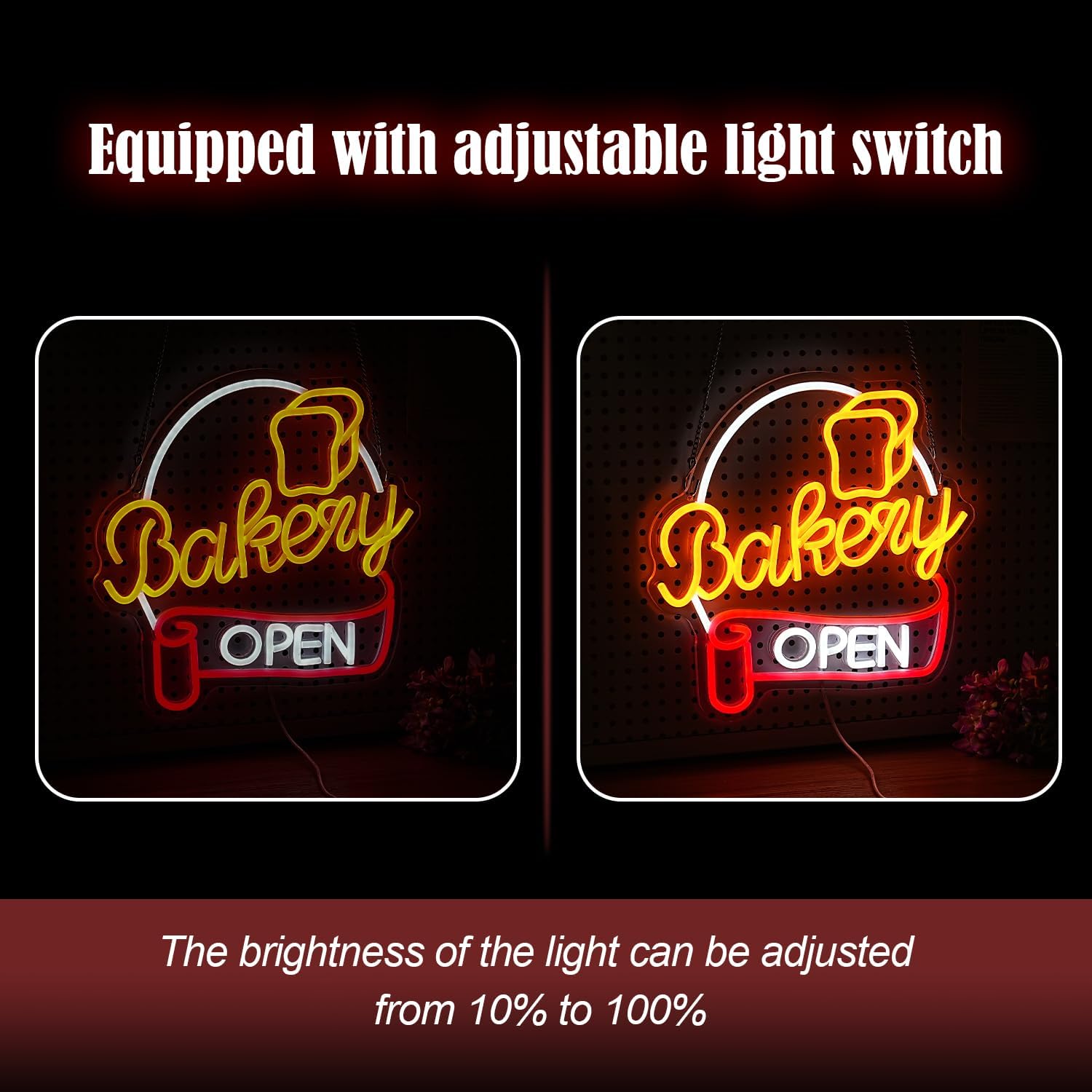 Dimmable Bakery Open Neon Sign USB Open Light Up Sign for Wall Decor Brighter LED Bakery Open Neon Light for Bakery Cake Shop Dessert House Business Decor(12.8 * 12.8 In)