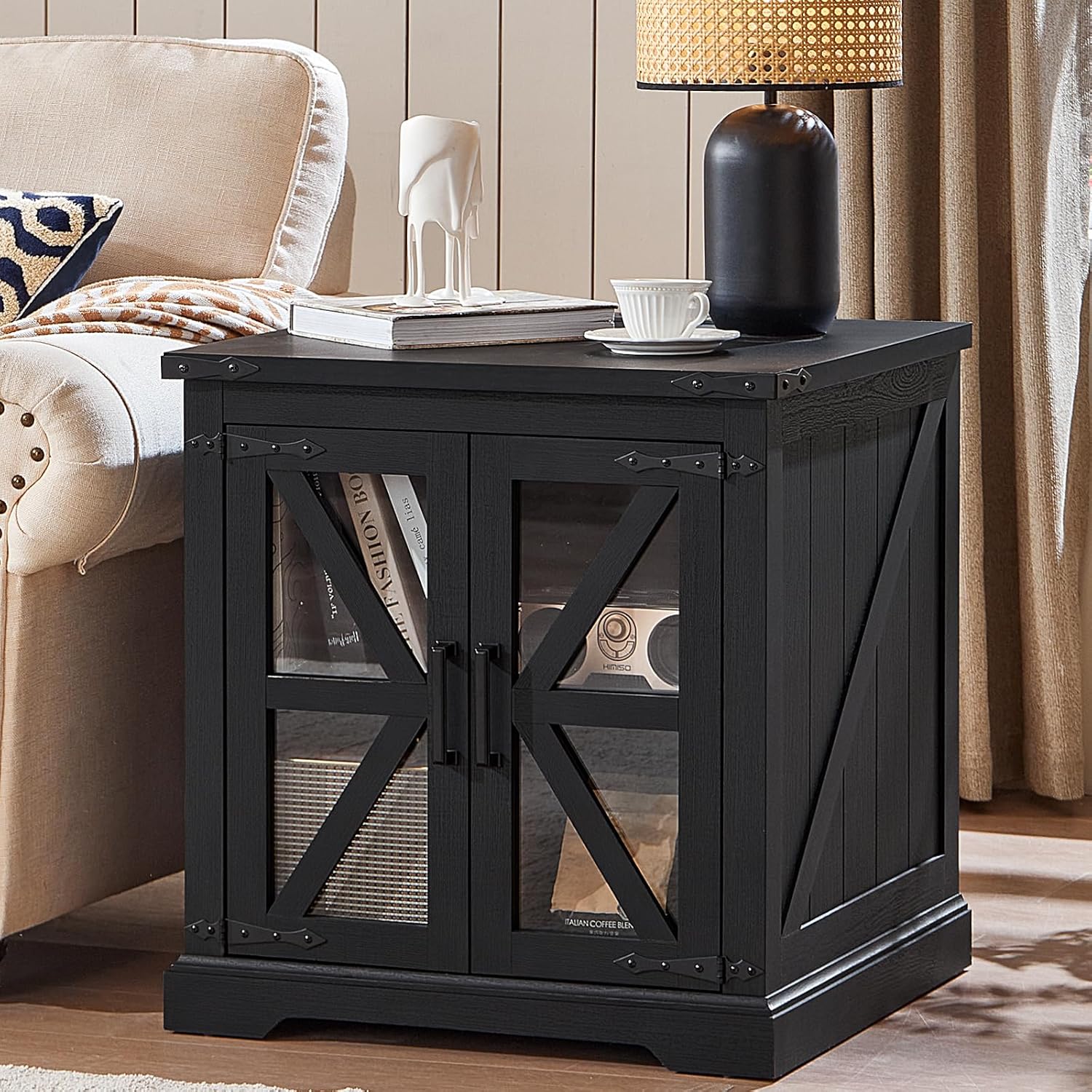 - ๐ก[Functional Art Piece]The oversized end tables living room storage design provides convenient storage for your living space. The built-in shelves can be adjusted to 3 different heights as per your needs, accommodating an abundance of books, blankets, or coffee mugs. The glass barn-style doors blend traditional farmhouse aesthetics with a modern sensibility, transforming this piece into a more contemporary farmhouse night stand, coffee table, bedside table, or side-of-sofa art.