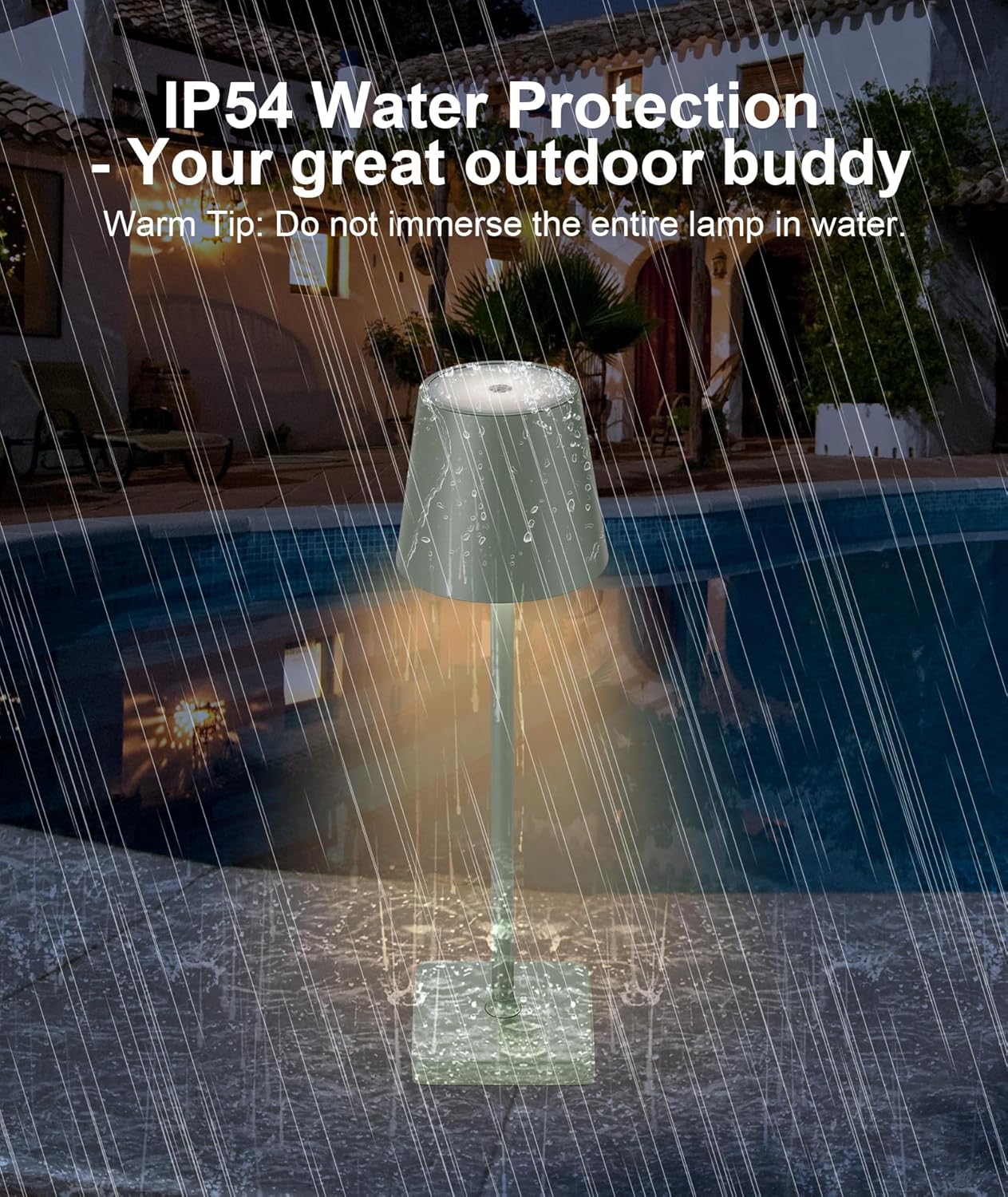 - Cordless Lamp Design: This cordless table lamp is made of all-aluminum metal body, the surface of the frosted coating process, IP54 water protection, can be used outdoors