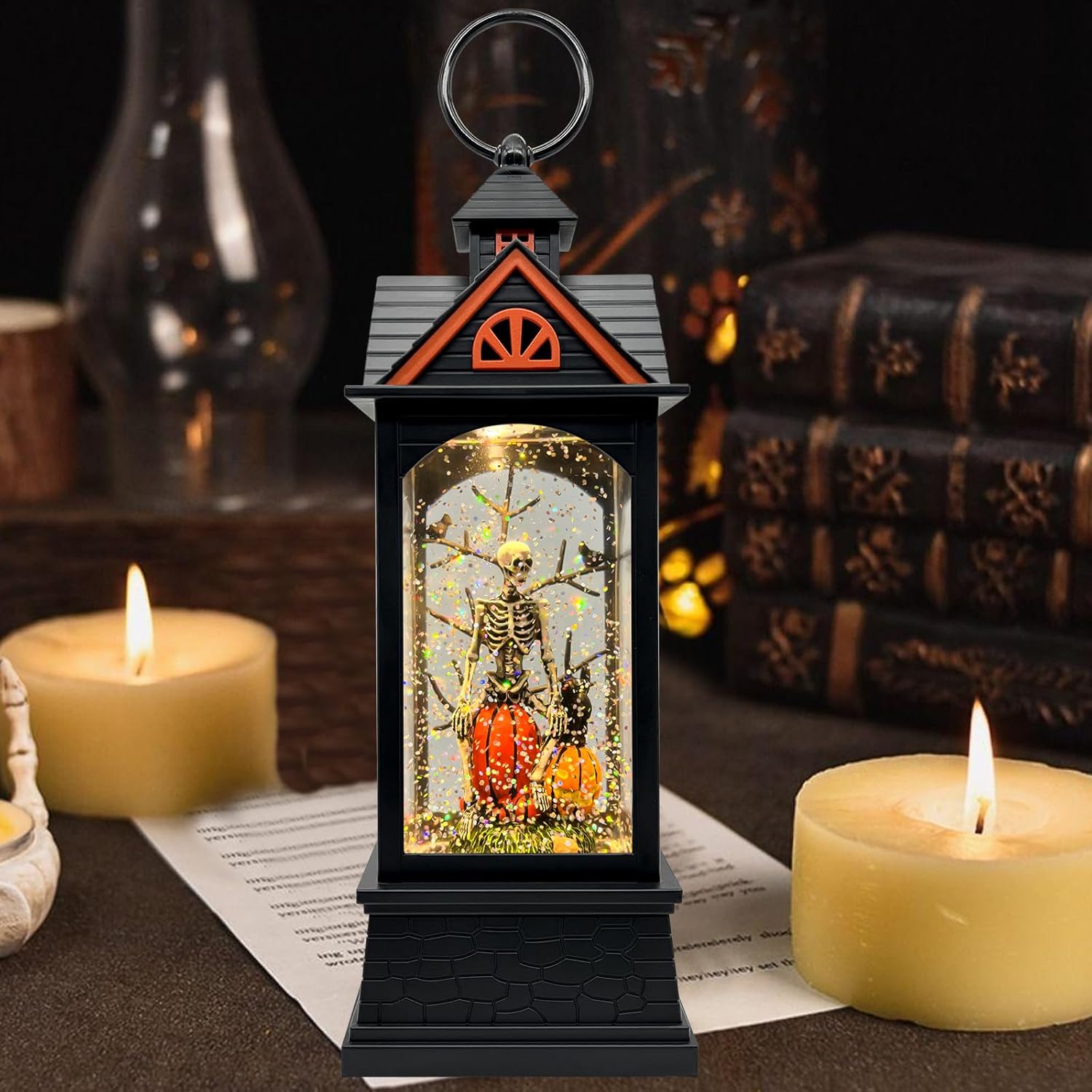 Halloween Snow Globe Lantern with 6 Hour Timer,Halloween Decorations Indoor for Home,Halloween Decor,USB or Battery Powered for Halloween Lanterns,Halloween Skeleton-B