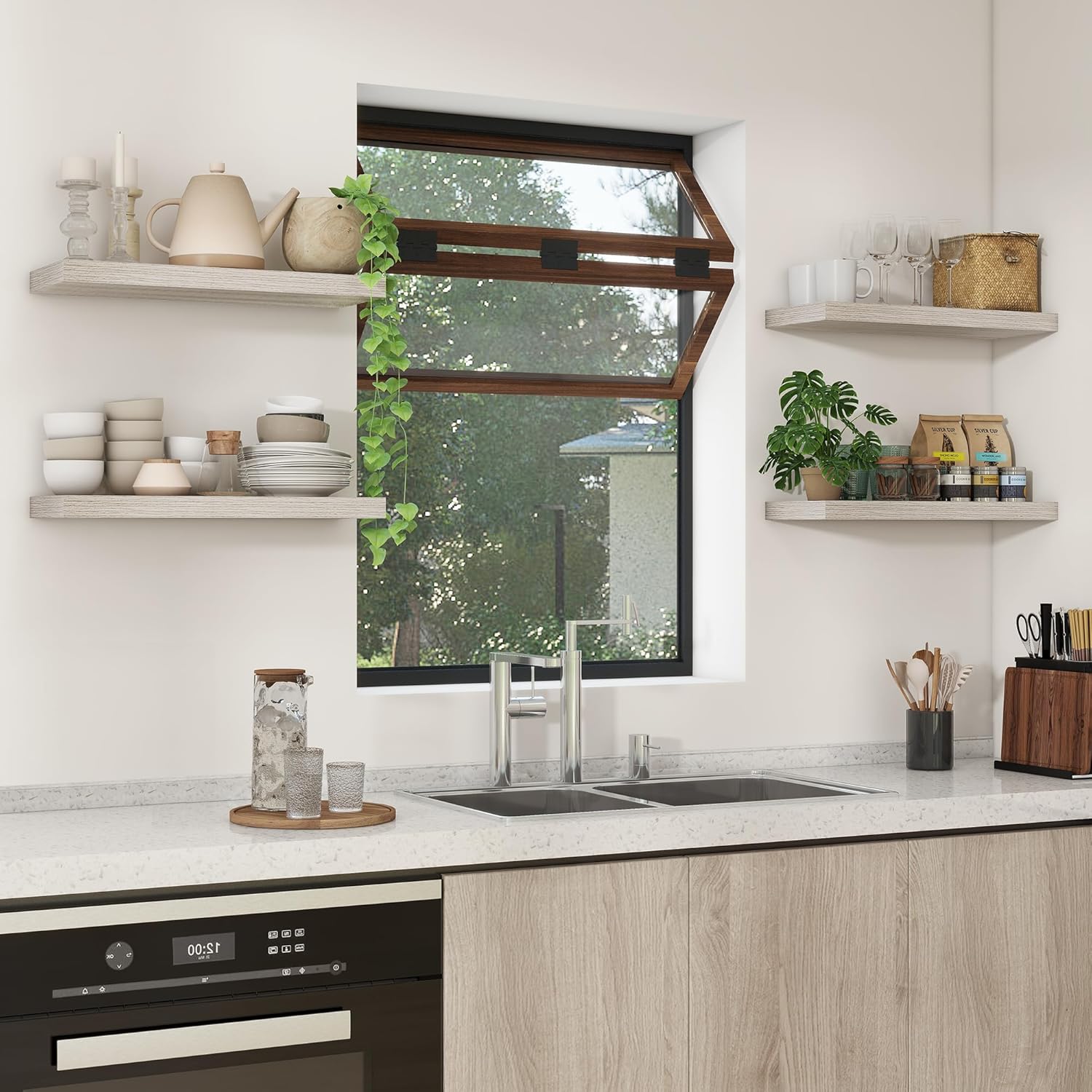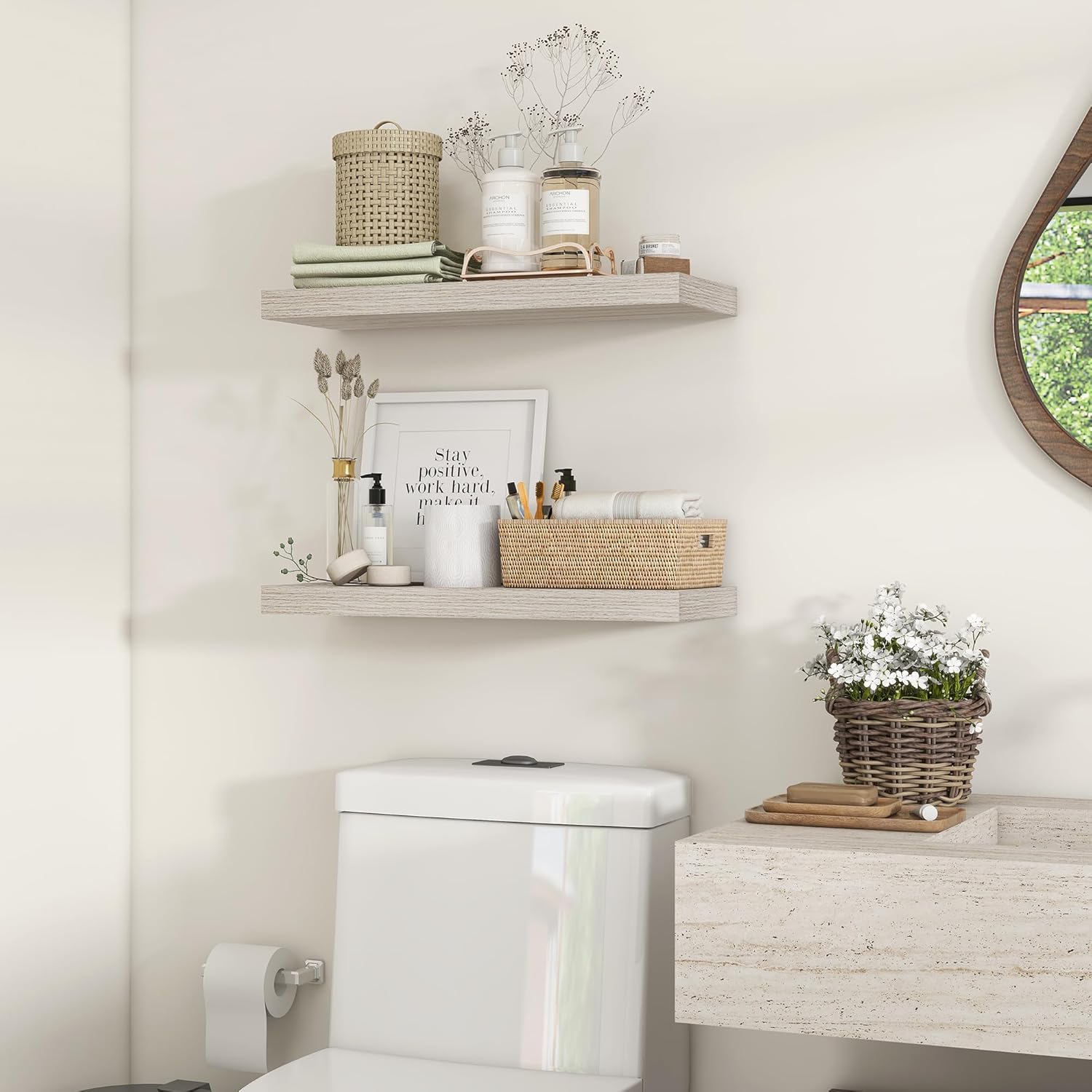 Heimlove 24 inch Floating Shelves for Wall,9.3 inch deep Grey Bathroom Over Toilet Shelf,Wall Mounted Rustic Wood Shelves for Bedroom,Living Room,Kitchen,Office Decor Set of 2-Grey