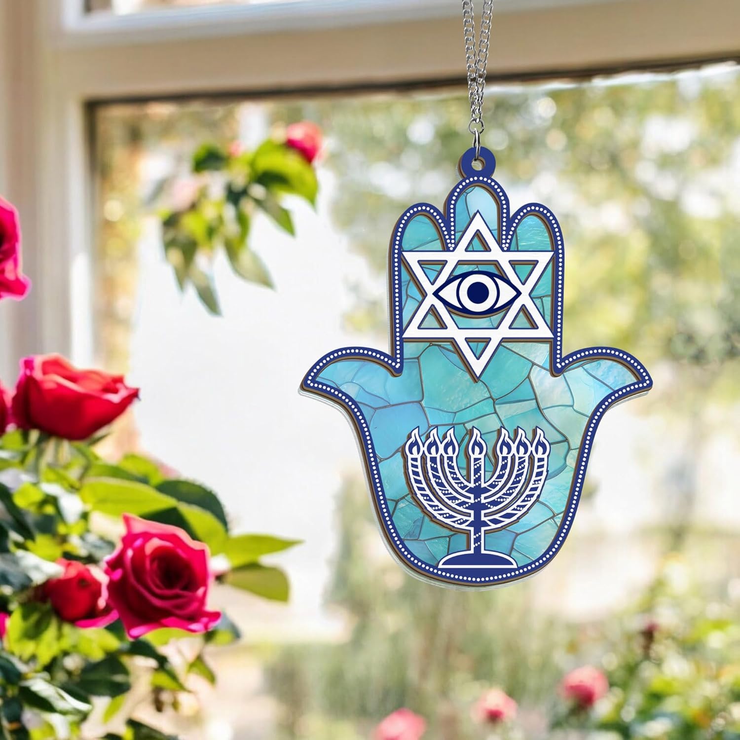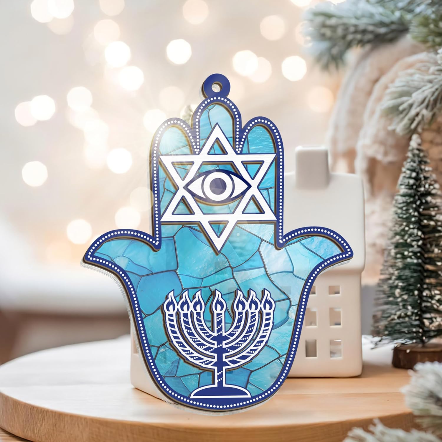 - HANUKKAH GIFTS FOR WOMEN, MEN โ Celebrate the profound symbolism of the Hamsa protection amulet with our exquisite suncatchers for windows hanging. Adorned with the Star of David and Blue Evil Eye design, these house warming gifts for men, women, good luck gifts for mom, friends bring a serene touch to your Hanukkah and Jewish spirit to your room, wall decor.