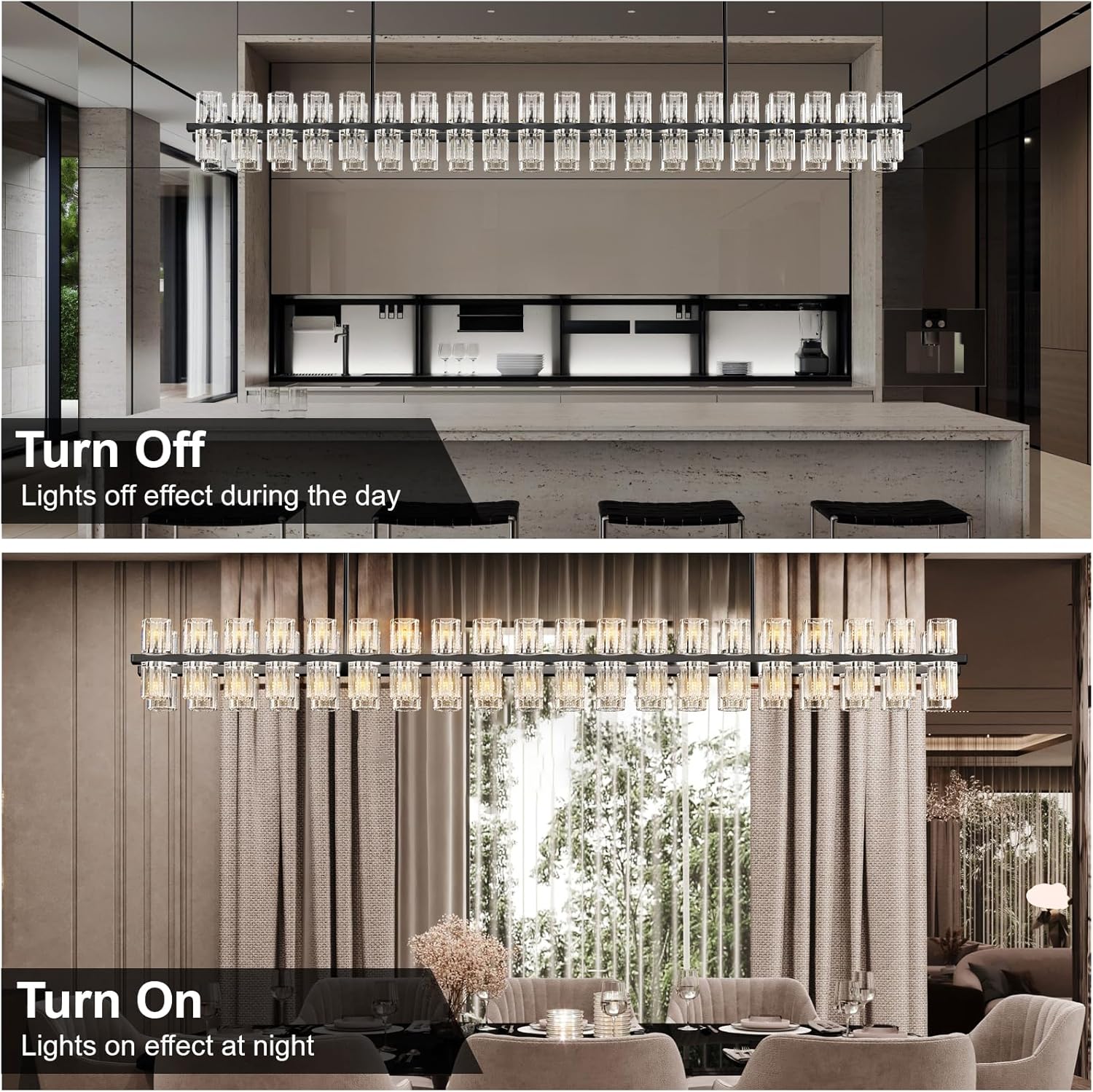 Crystal Black Rectangular Chandelier Light Fixture,72 in Large Dining Room Chandelier Over Table,Modern Chandeliers for Living Room,Arcachon Chandeliers,Kitchen Island,Includes 80xG4 Bulbs