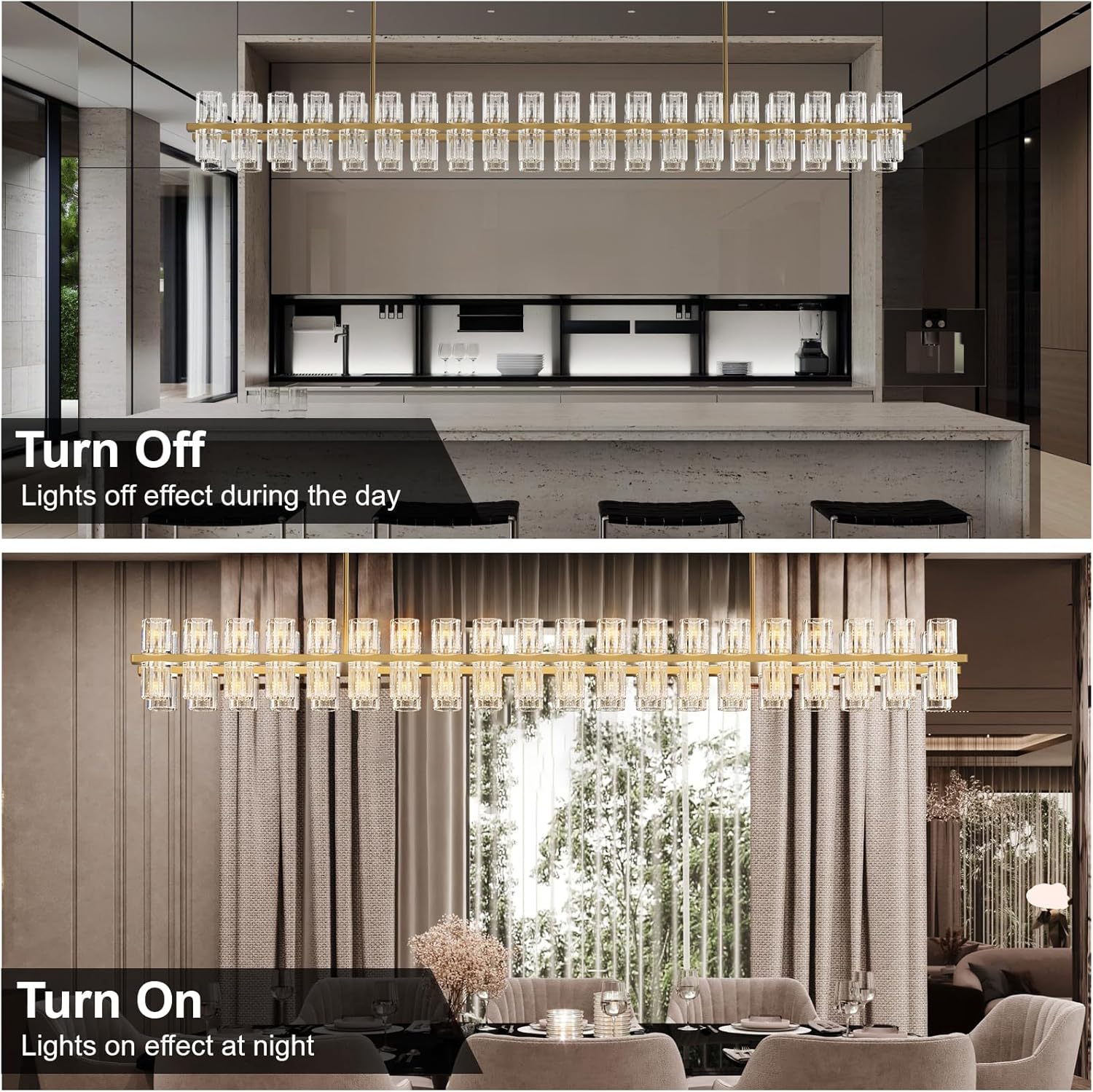 Crystal Brass Rectangular Chandelier Light Fixture,72 in Dining Room Chandeliers Over Table,Modern Chandelier For Living Room,Arcachon Chandeliers,Kitchen Island Chandelier,Includes 80xG4 Bulbs