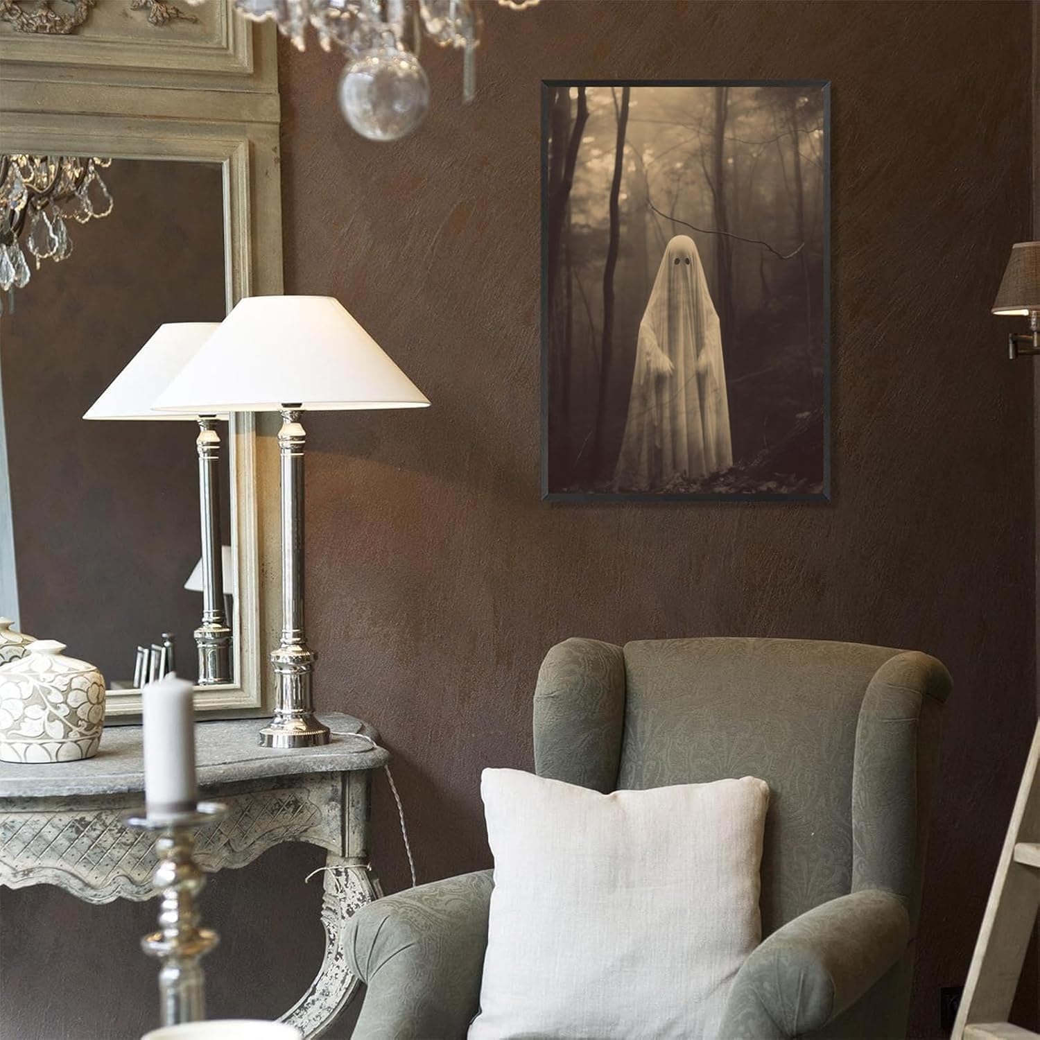 Ghost Forest Spooky Print Poster The Gothic Room Decor Creepy Picture Posters Dark Academia Aesthetic Family Prints Canvas Wall Art Home Apartment Decorations 12X16inch Aluminum Framed
