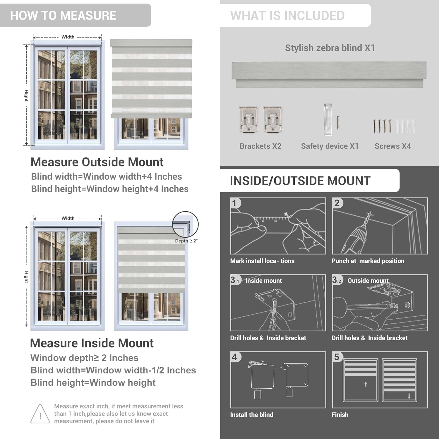 Cordless Zebra Blinds for Windows, Blackout Interior Blinds,Easy to Install,UV Protection,for Offices and Home,Custom Roller Shades, Mousse Beige,14" W x 88" H