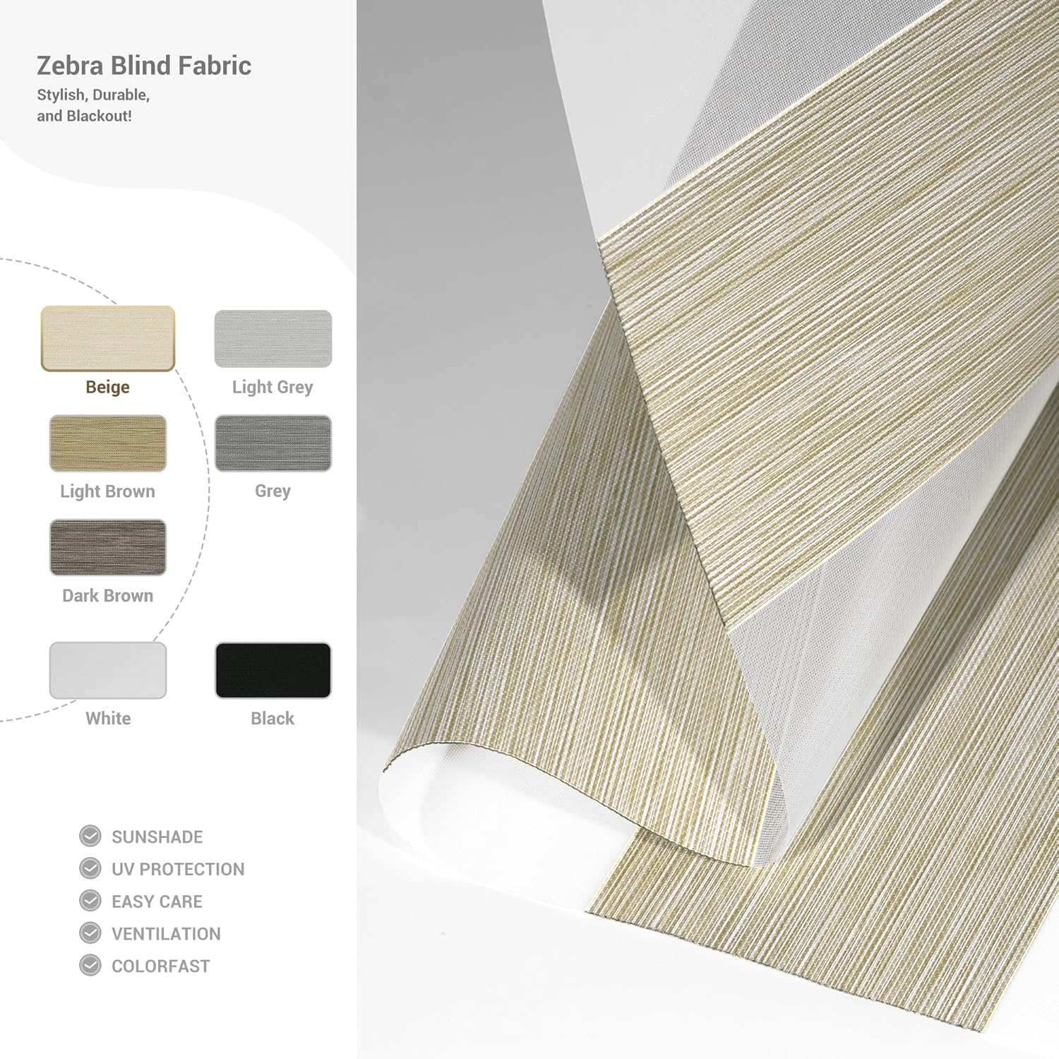 Cordless Zebra Blinds for Windows, Blackout Interior Blinds,Easy to Install,UV Protection,for Offices and Home,Custom Roller Shades, Mousse Beige,74" W x 48" H