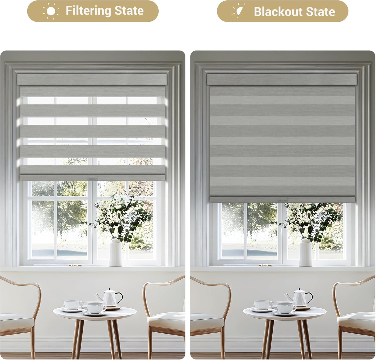 Cordless Zebra Blinds for Windows, Blackout Interior Blinds,Easy to Install,UV Protection,for Offices and Home,Custom Roller Shades, Mousse Light Grey,25" W x 64" H