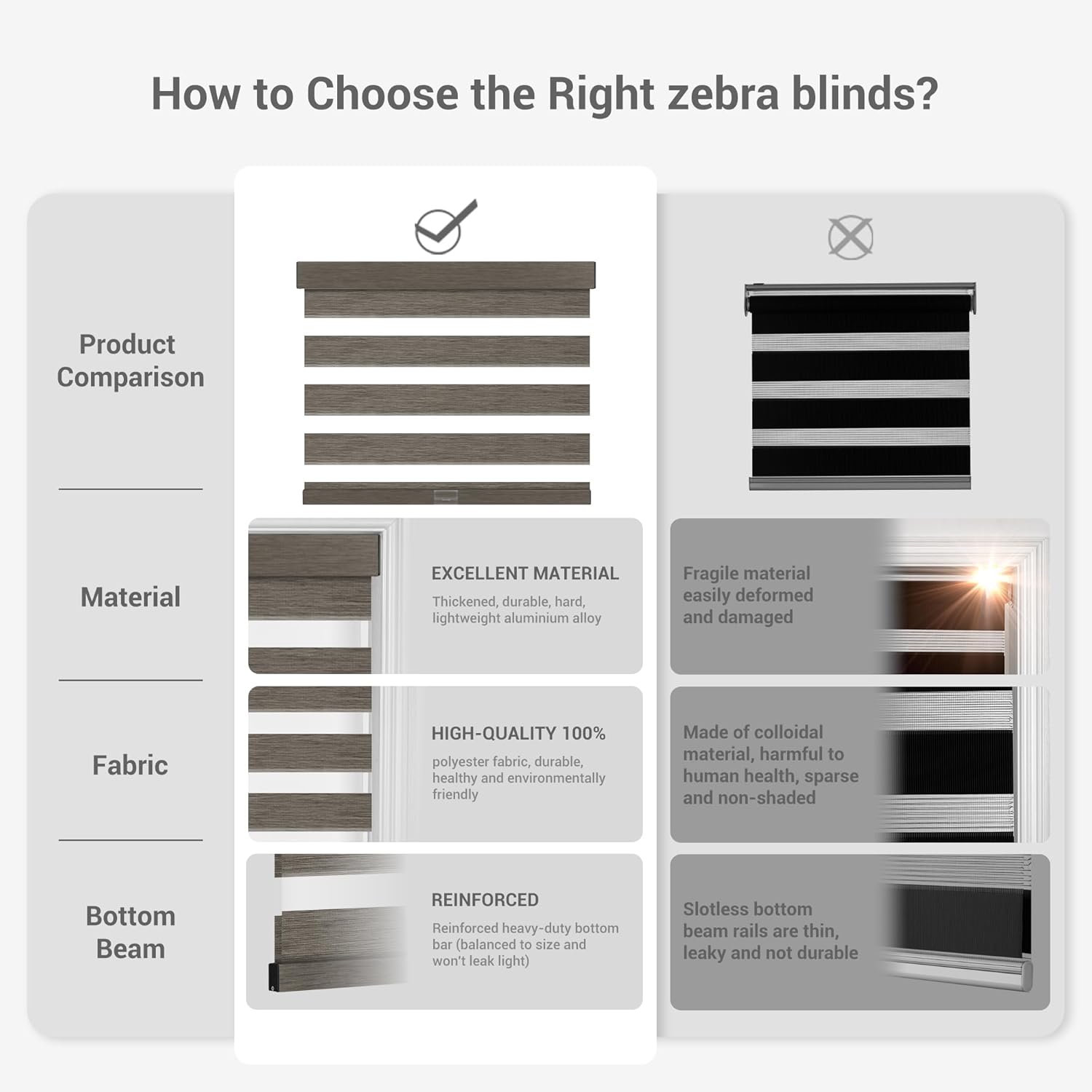 Cordless Zebra Blinds for Windows, Blackout Interior Blinds,Easy to Install,UV Protection,for Offices and Home,Custom Roller Shades, Mousse Dark Bown,70" W x 64" H