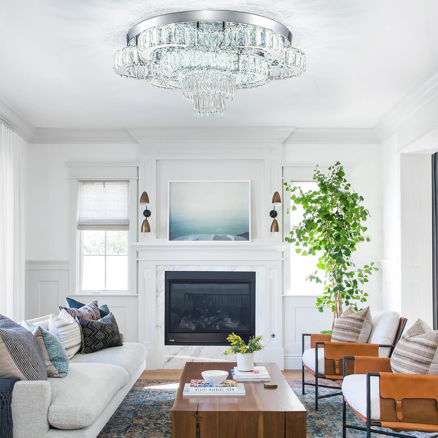 - -Wide Application: itโs perfect to put this flush mount chandelier in large space or low ceiling such as your living room, dinning room, kitchen, bedroom, closet, foyer, porch, farmhouse, hallway, hall, study etc.