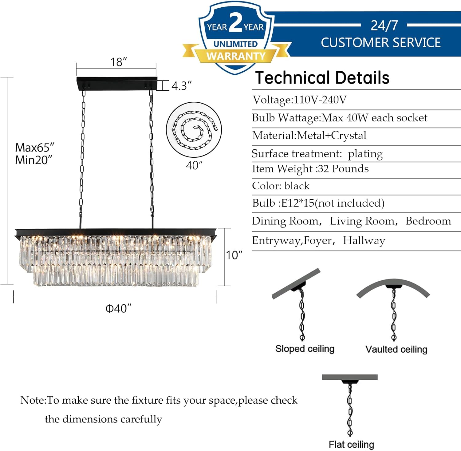 - CUSTOMER SERVICE: We provide all customers with satisfactory service,if you have any incomprehension about the order or product,or crystal chandelier installation and other problems,we will provide you with satisfactory solutions within 24 hours