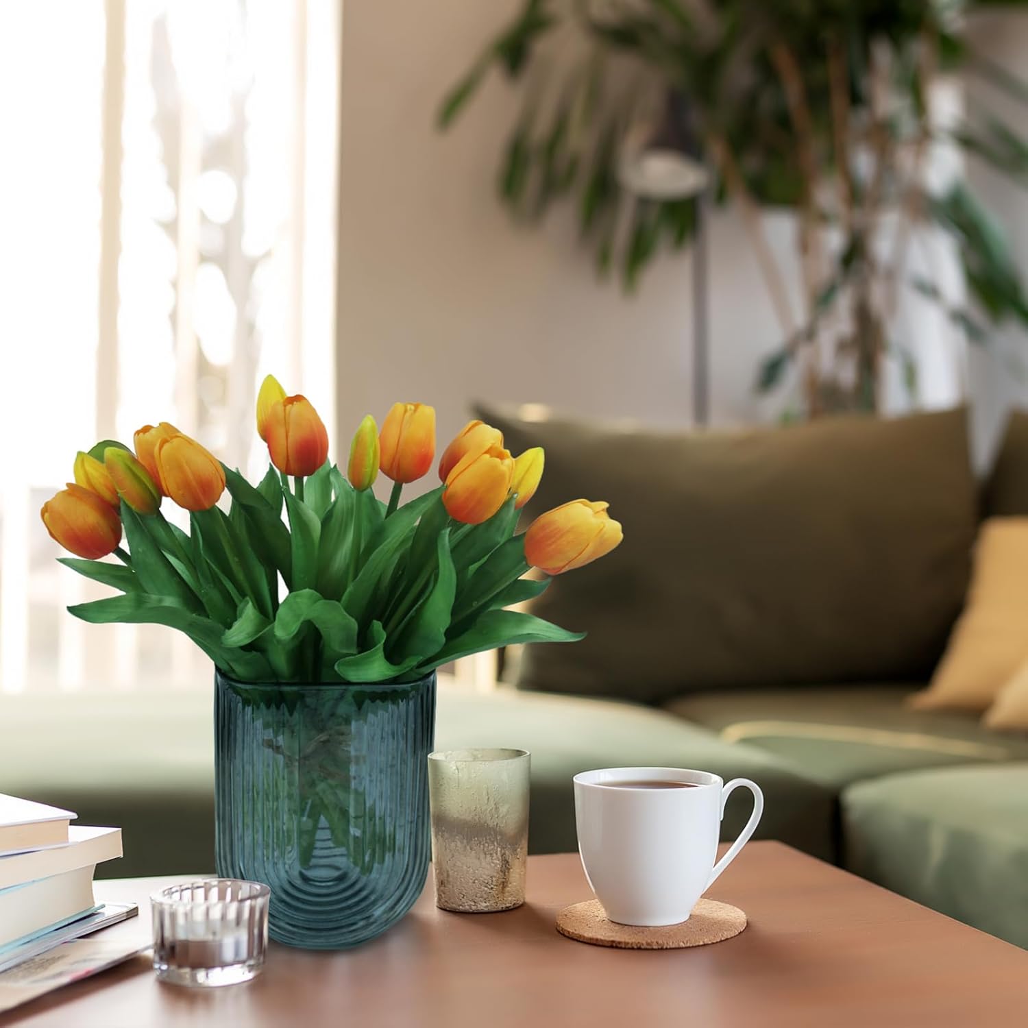 15pcs Artificial Tulips Flowers, Fake Tulips Real Touch, Faux Latex Bouquets, for Party Wedding Home Room Decoration (Orange)