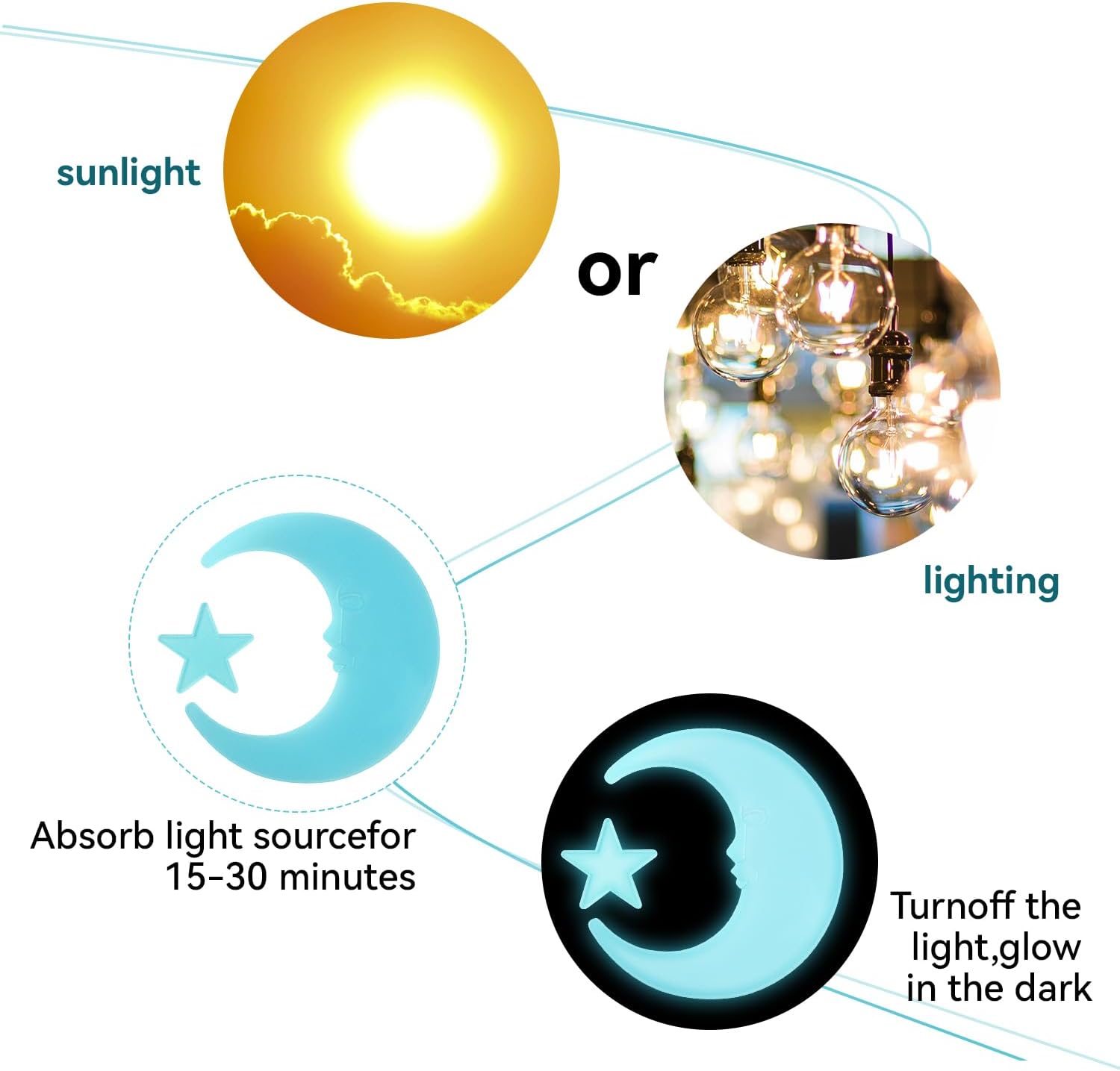 - Widely used: This glow in the dark moon and stars wall stickers is suitable for baby rooms, game rooms, ceilings, and even corridors, adding a touch of romance and fantasy to every corner of the home. It can also be used as a decoration for parties, birthday parties, and weddi