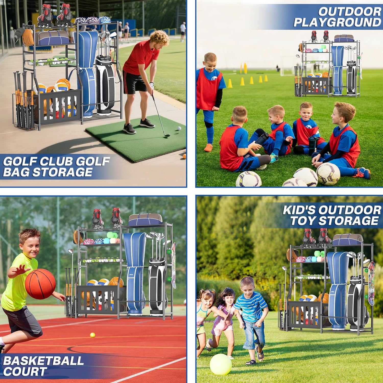 - OrganizeLink Golf Bag Organizer: Perfect for sports families with kids; this sports equipment organizer can be used as a basketball rack, golf bag stand, sports ball storage, and garage toy organizer; It allows kids to easily access their gear, encouraging active participation in sports while keeping everything tidy and visible