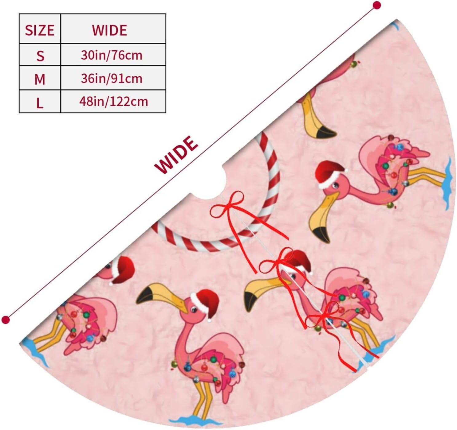 36" Large Christmas Tree Skirt, Christmas Decorated Flamingo Pattern Tree Mat Base Cover for Xmas Festive Holiday Party Decoration Ornaments