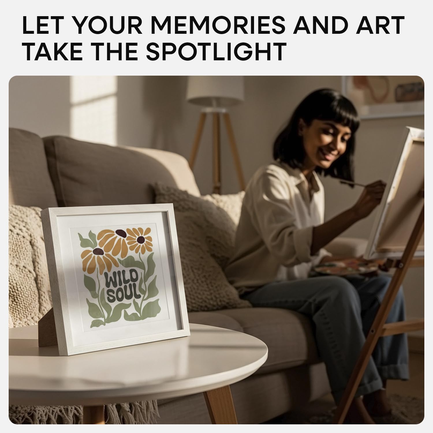 Homeforia 10x10 White Picture Frame, High-End Oak 10 x 10 Square Wooden Frames with Mat 8 by 8 Photo, 10by10 Wood Frame Matted to 8x8 Print, Wall or Tabletop Frames, Tempered Glass, Wall Kit, Set of 1