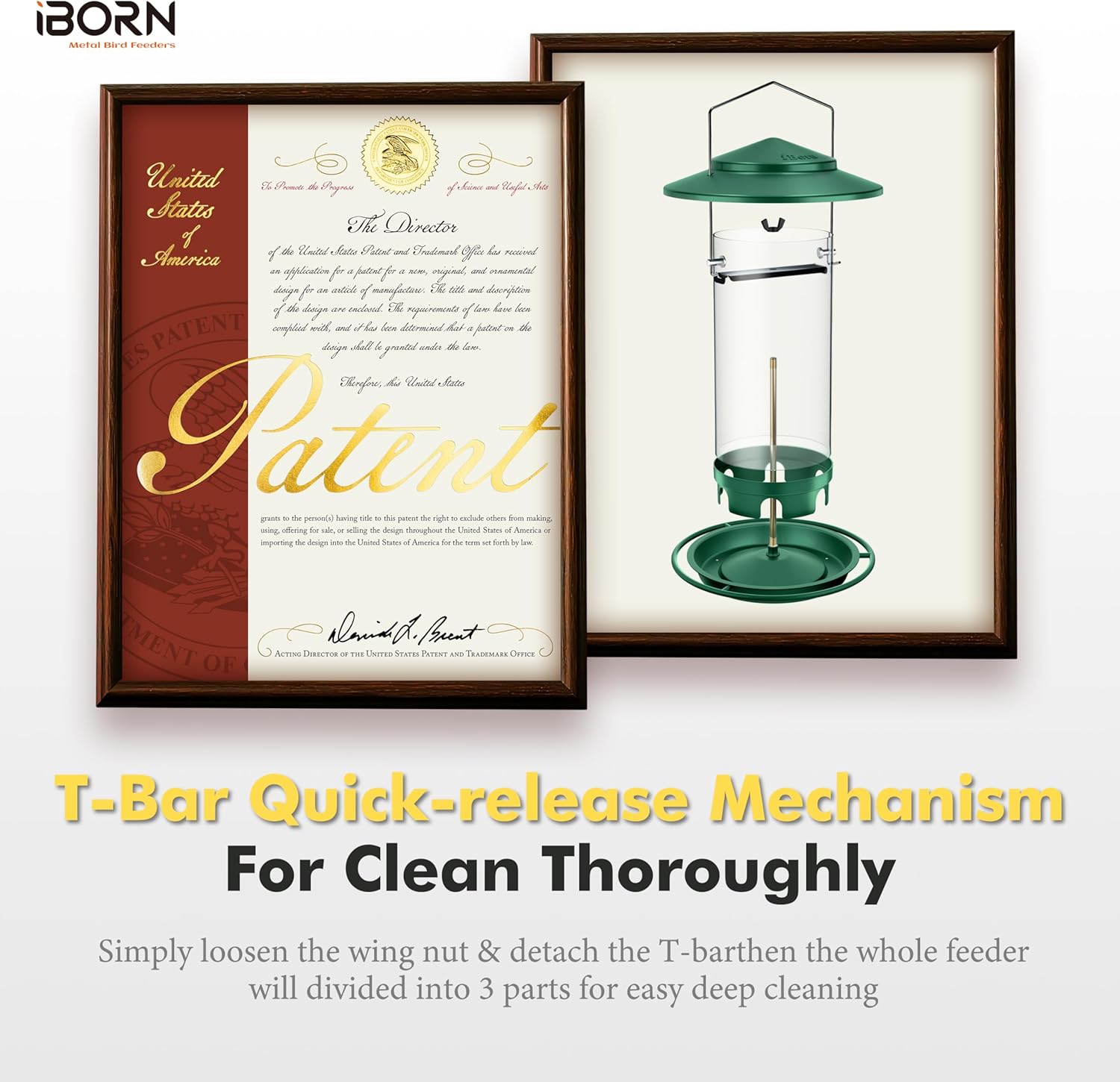 - 【2.8lb Large Capacity&Port Control Seeds Flow,Fill Once a Week】iBorn Large Capacity Bird Feeder Holds up to 2.8lb of seed,reduce the number of regular fills.With right size of each port control seeds flow into the tray.Reduce excess seeds waste and make it easier to fill once a week.
