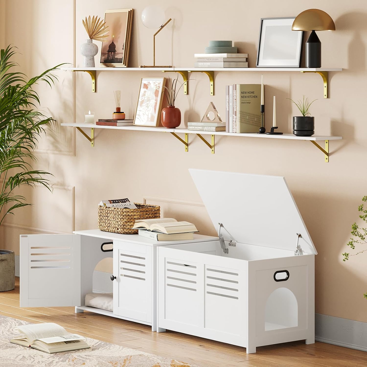 - 【Wide Application】Use it as a unique TV wall, bookshelf, coffee bar or display stage. Even to be an ideal play area for your cats. Wide storage shelves can store books, games, decorations, plants, towels, photos, collectibles etc. Create additional storage in living room, bathroom, bedroom, balcony, study, kitchen, laundry, bar area and office