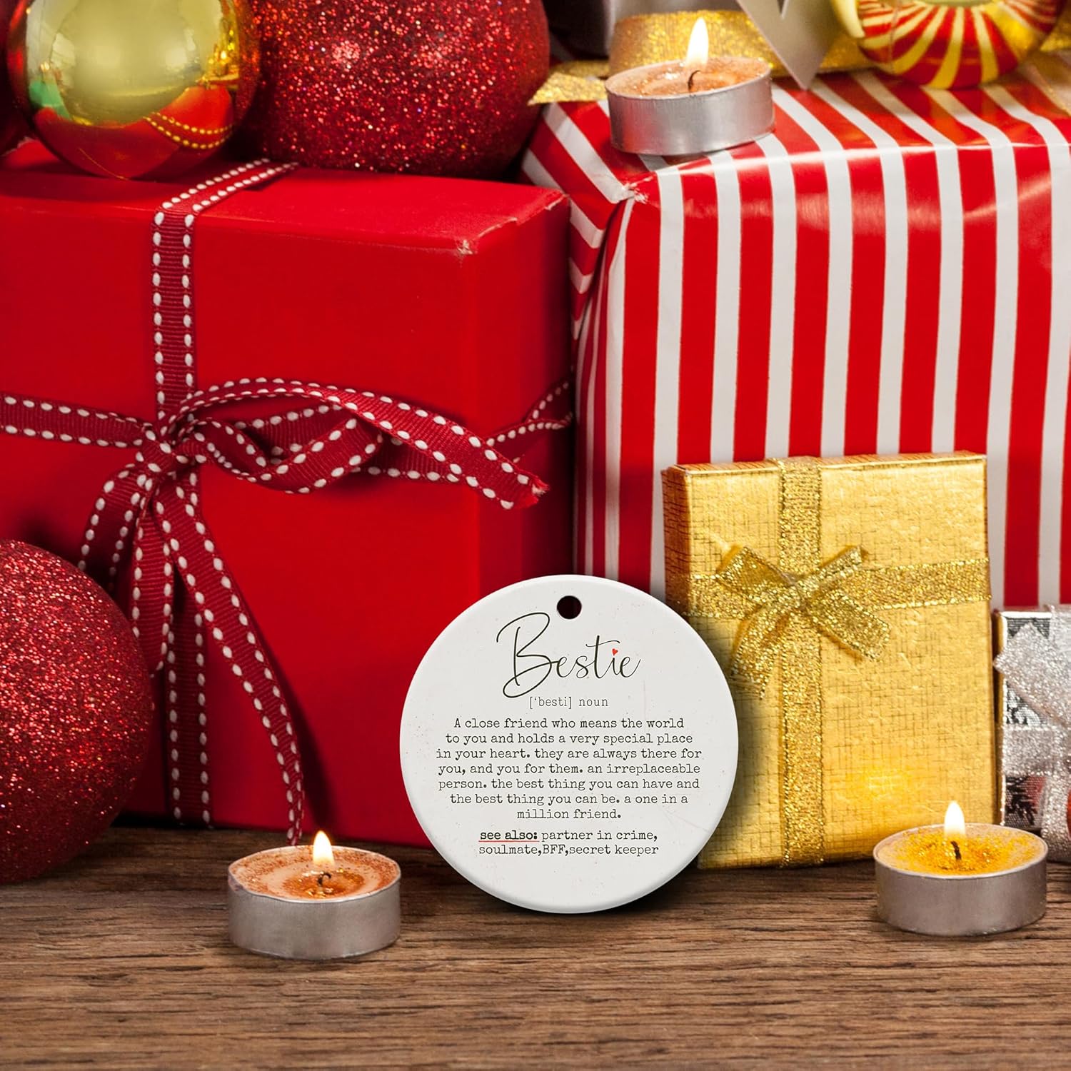 Friendship Gifts for Women, Best Friend, Funny, Work Besties, Sister, Friend Ornaments for Women, Ceramic Christmas Ornaments (Besties 2)