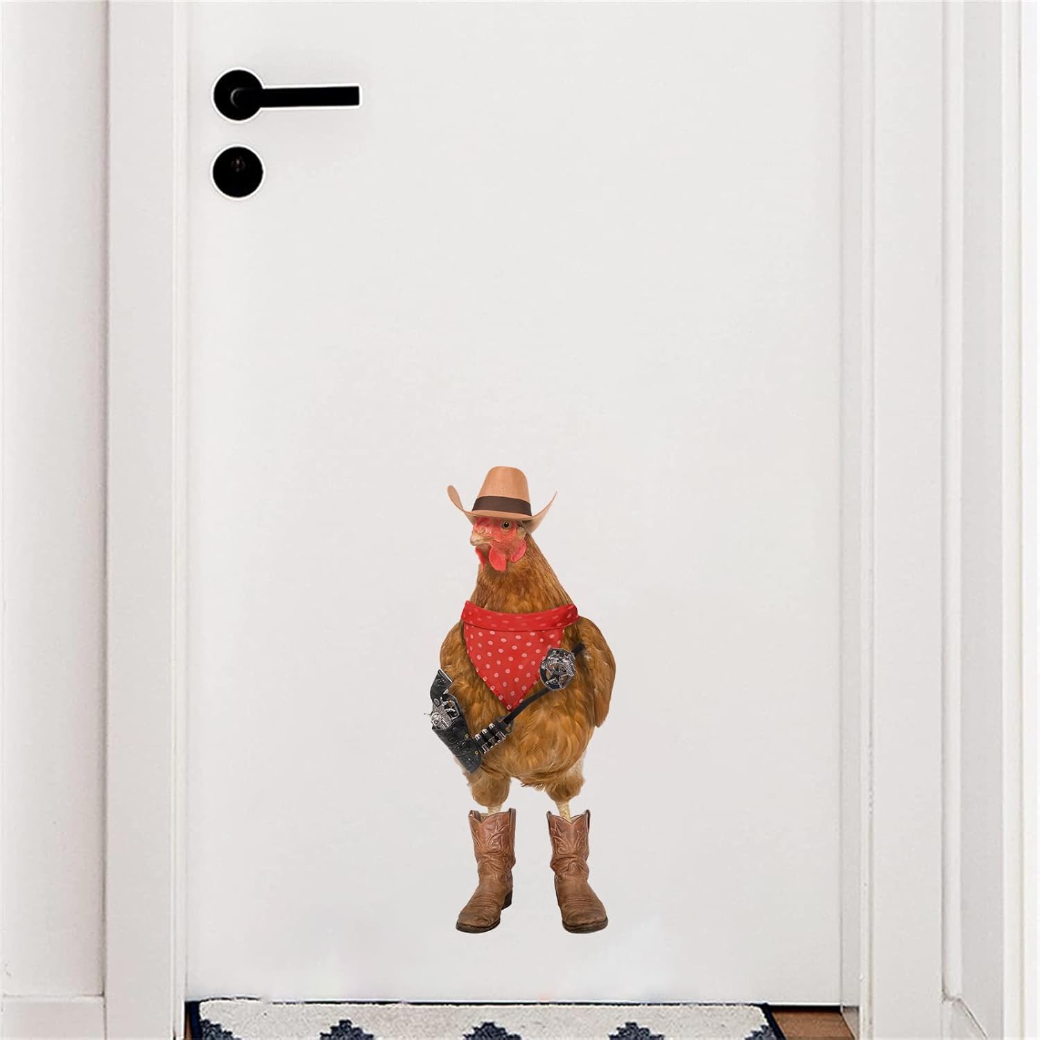 Cool Cowboy Chicken Wall Stickers Peel and Stick, Chicken Lover Gifts Window Stickers Removable, Funny Farm Chicken Wall Decals Decor, Weird Gifts for Friends
