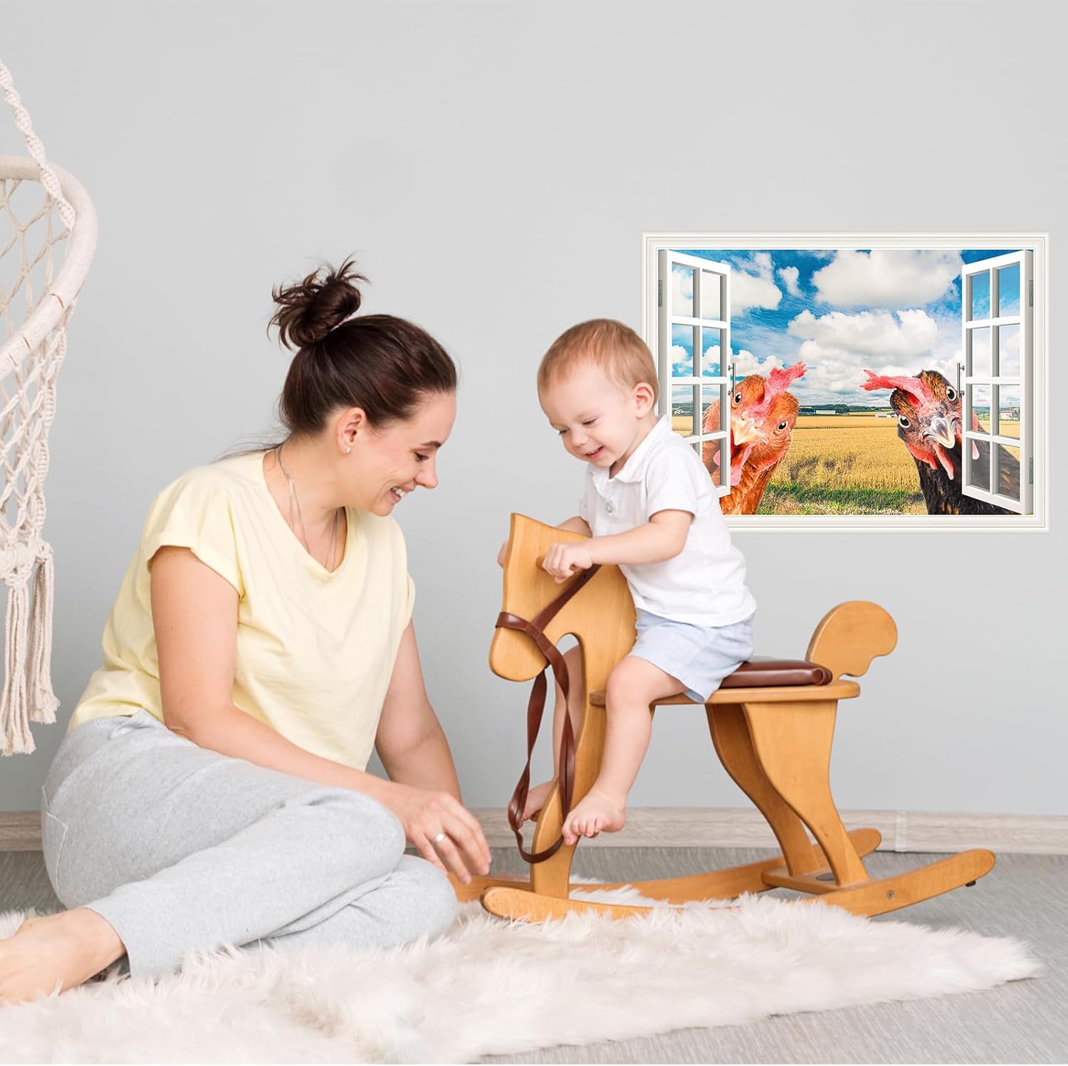 Funny Chicken Wall Stickers Peel and Stick - 2 Hens Head Looking Inside from Window - Cute Chicken Wall Decals Removable - Chicken Lover Gifts Wall Decor for Bedroom Farmhouse Kitchen Dorm