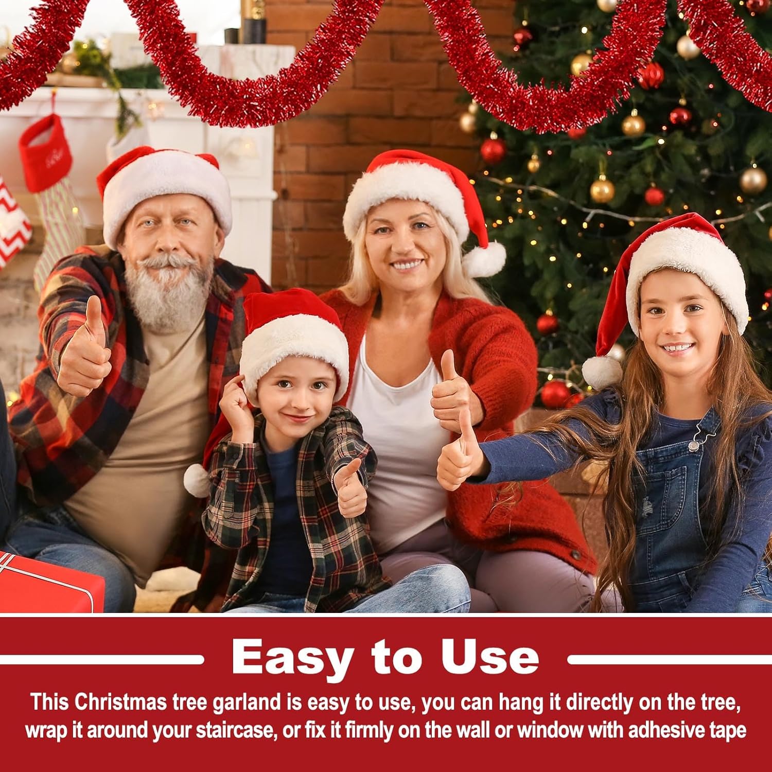 - Easy to Hang: Christmas tinsel garland include a soft, bendable wire inside, and easy to shape as different looks. You can also trim it into different sizes, twist them into various shapes as you like, or with the tape stick it on the wall, window, table, door, rail or any place you like, show the christmas glamour to make your party decoration for the home fun