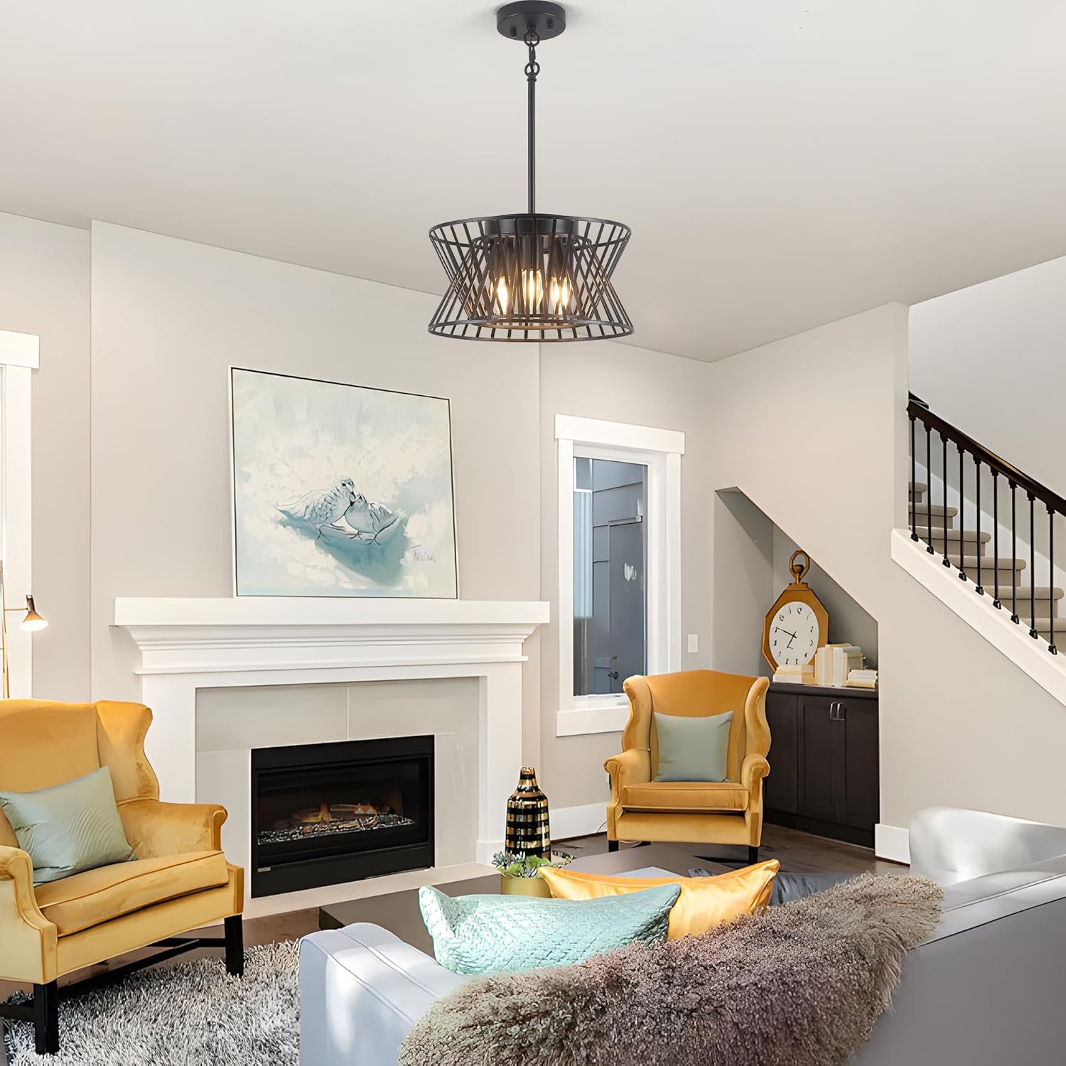3-Lights Black Pendant Light Vintage Geometric Chandelier Light Fixture Adjustable Metal Lighting Fixtures for Kitchen Room Dining Room Foyer