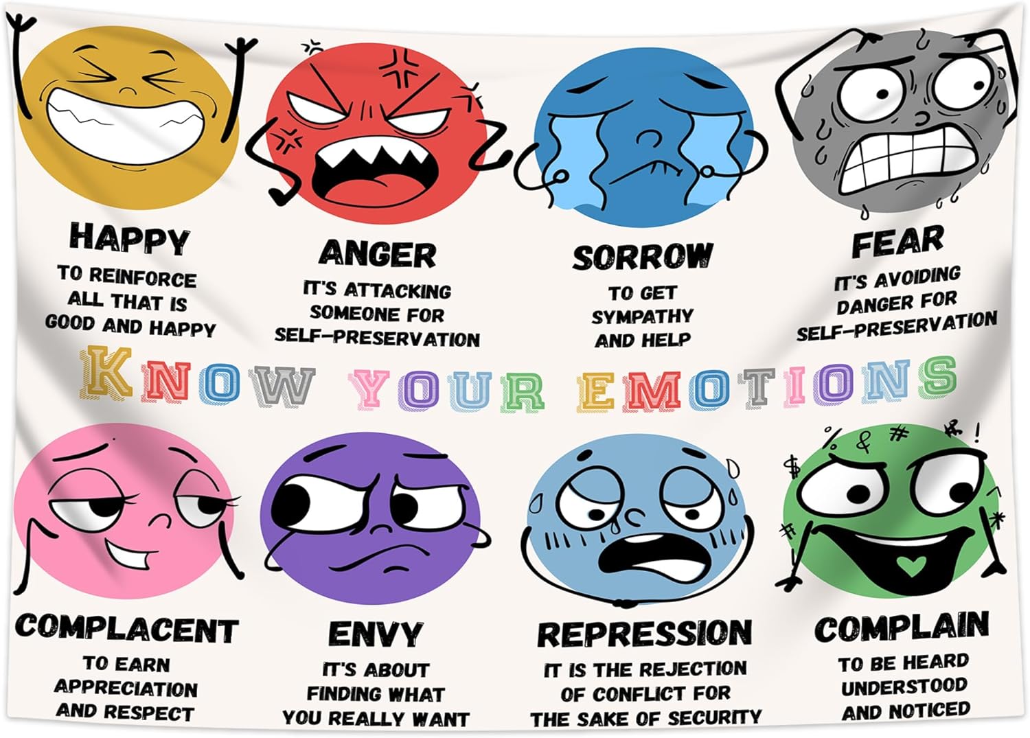 dueeia Mental Health Therapy Tapestry Wall Hanging Counseling Office Classroom Inspirational Motivational Tapestries for School Bedroom Living Room Wall Decor (90.6"x70.9")
