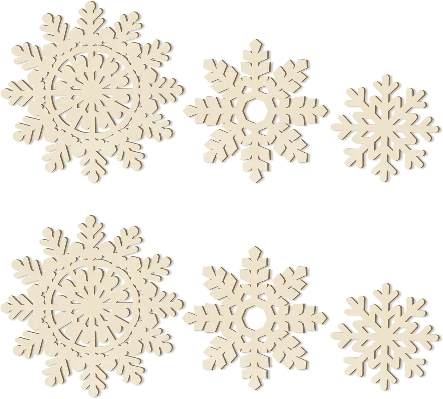 - 3 Styles Shape: They are an ideal size and come in various lengths, with the longest side being 9 inches, for painting or making crafts. There are 3 styles of snowflake wood chips, 2 pieces each, 6 pieces in total